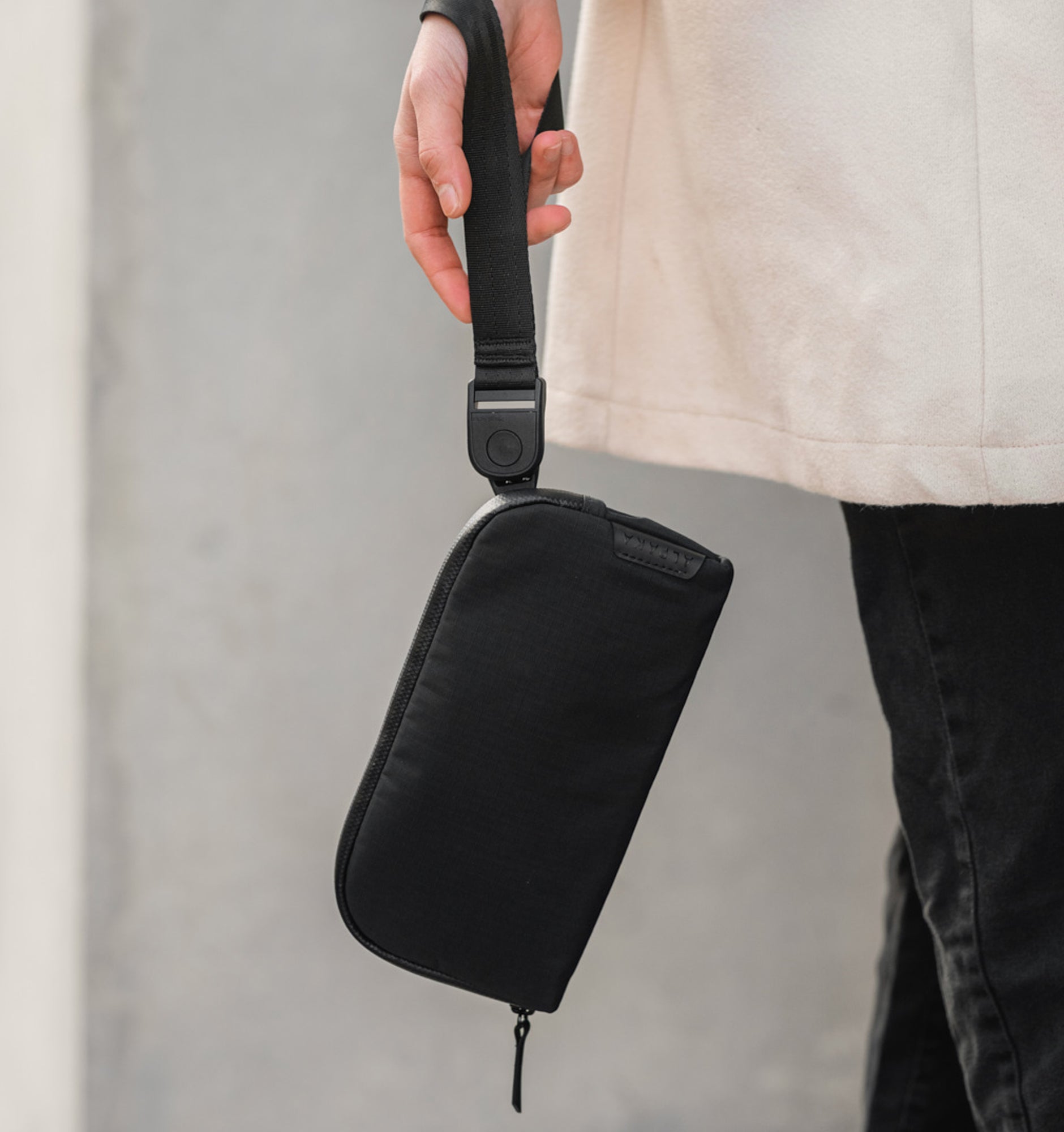 - Multiple Modes - Tuck it in your carry-on as a pouch. Wear it on your wrist with the hand strap. Or use the shoulder strap to make it a sling, around town.