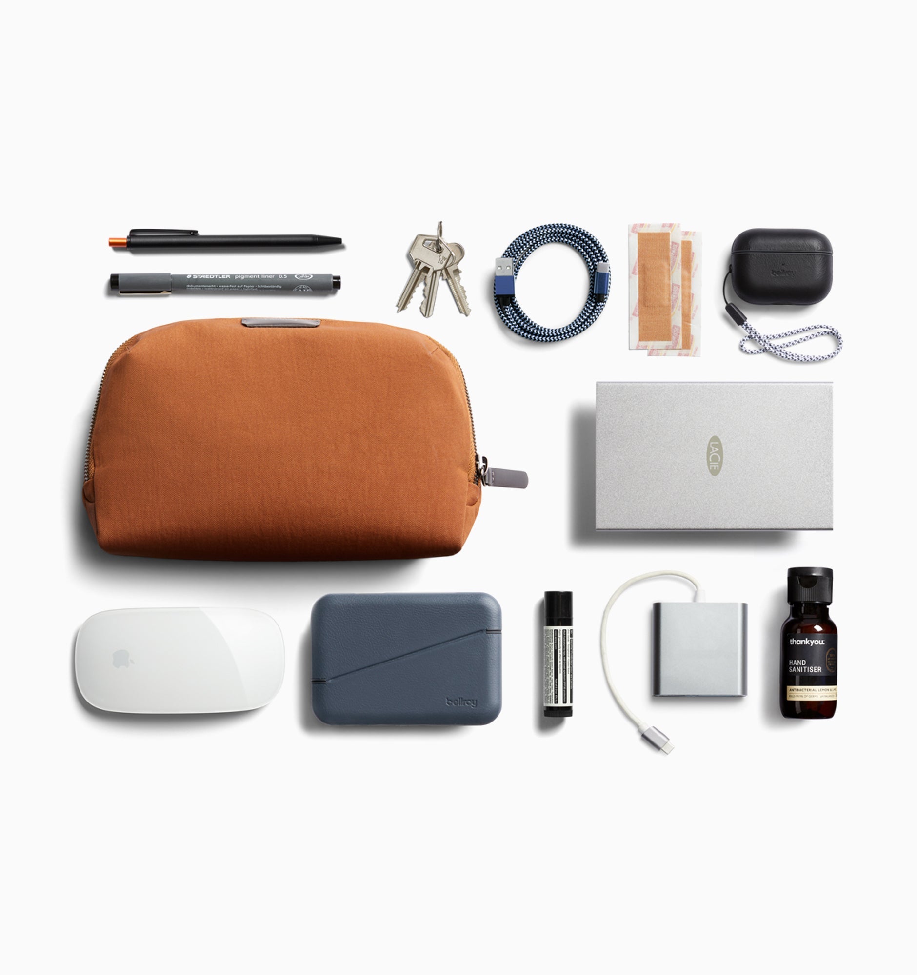 The Bellroy Desk Caddy pouch keeps your tech and desk essentials organised and on display then zips up so you can dash to your next hot desk.