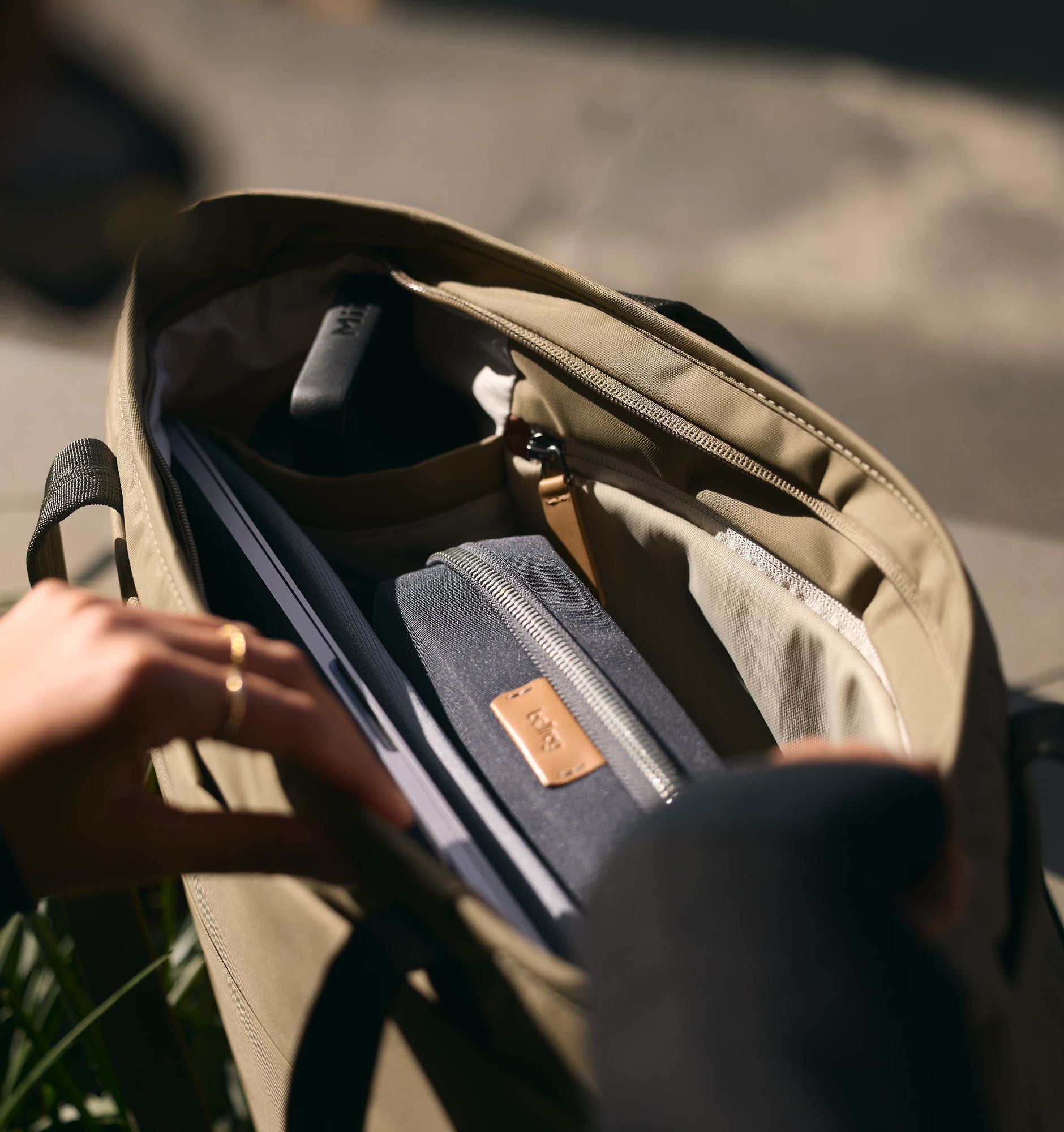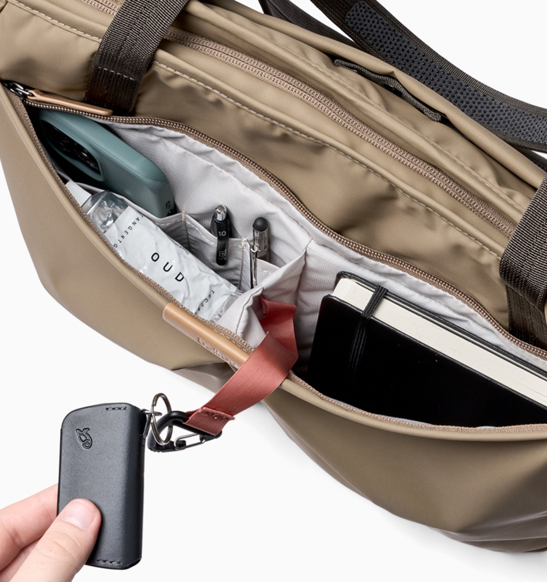 - Internal toolbelt - Access to the laptop sleeve and internal pockets is all at the same height, creating a ‘toolbelt’ that makes finding your things quick and intuitive.