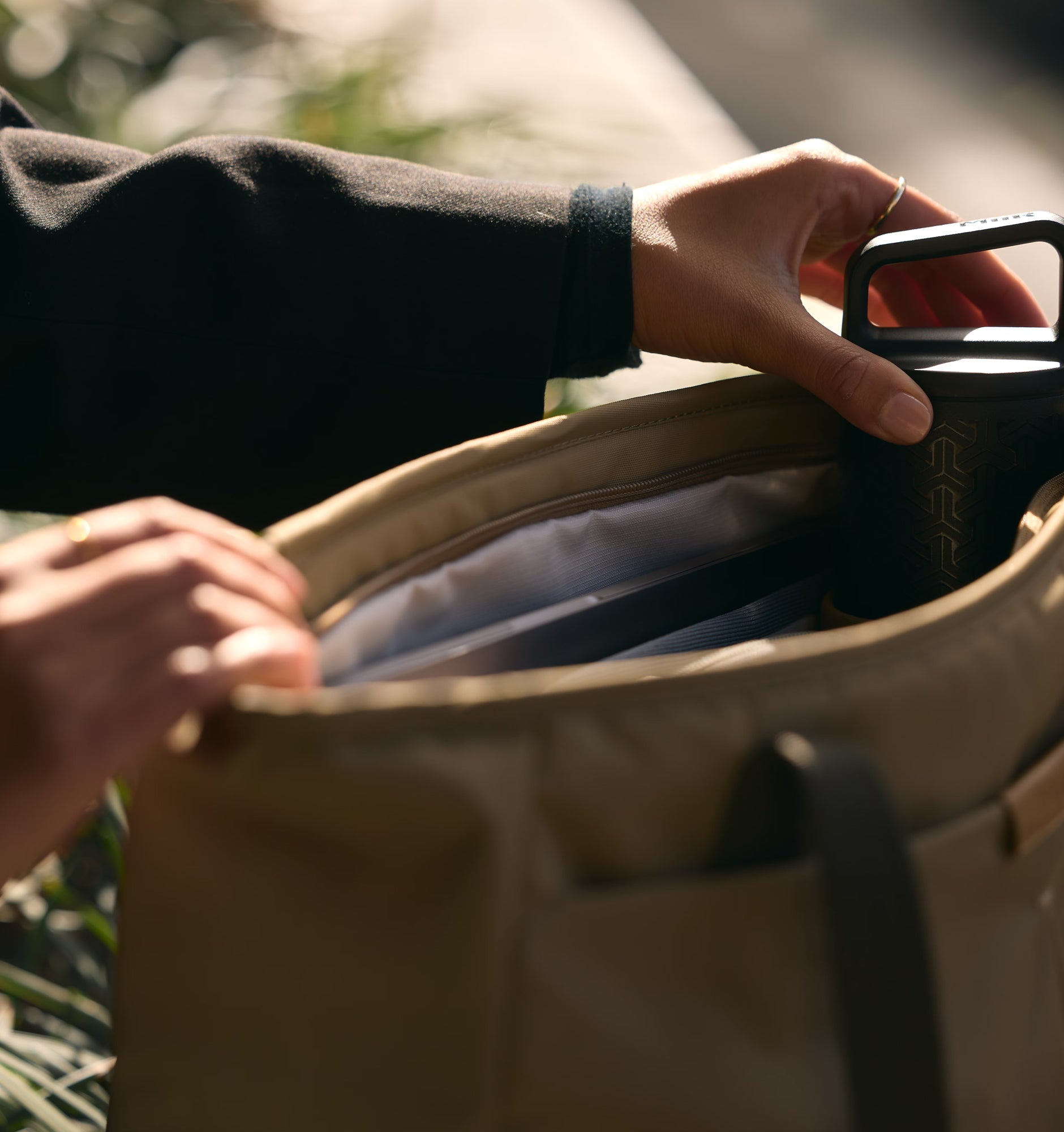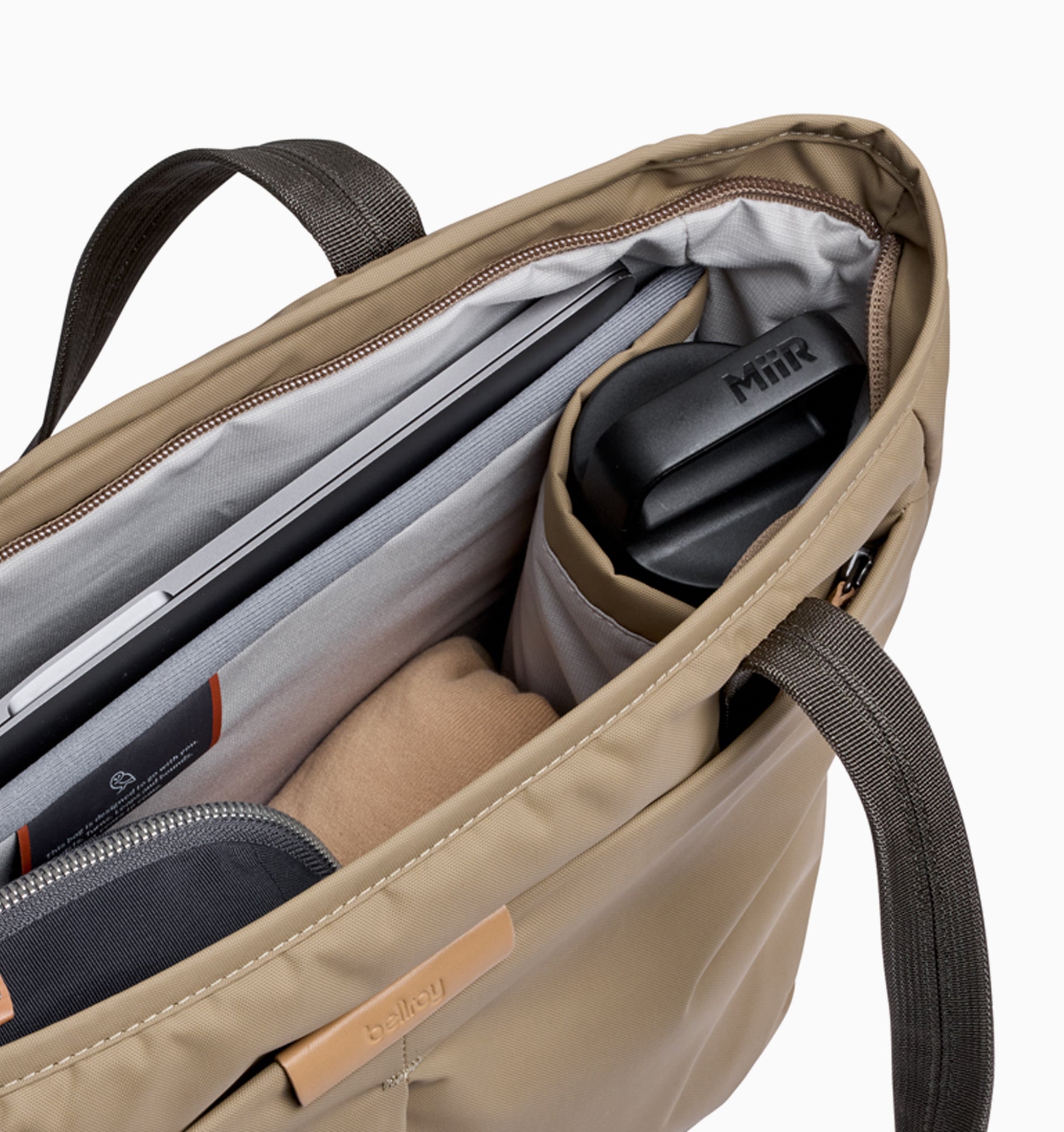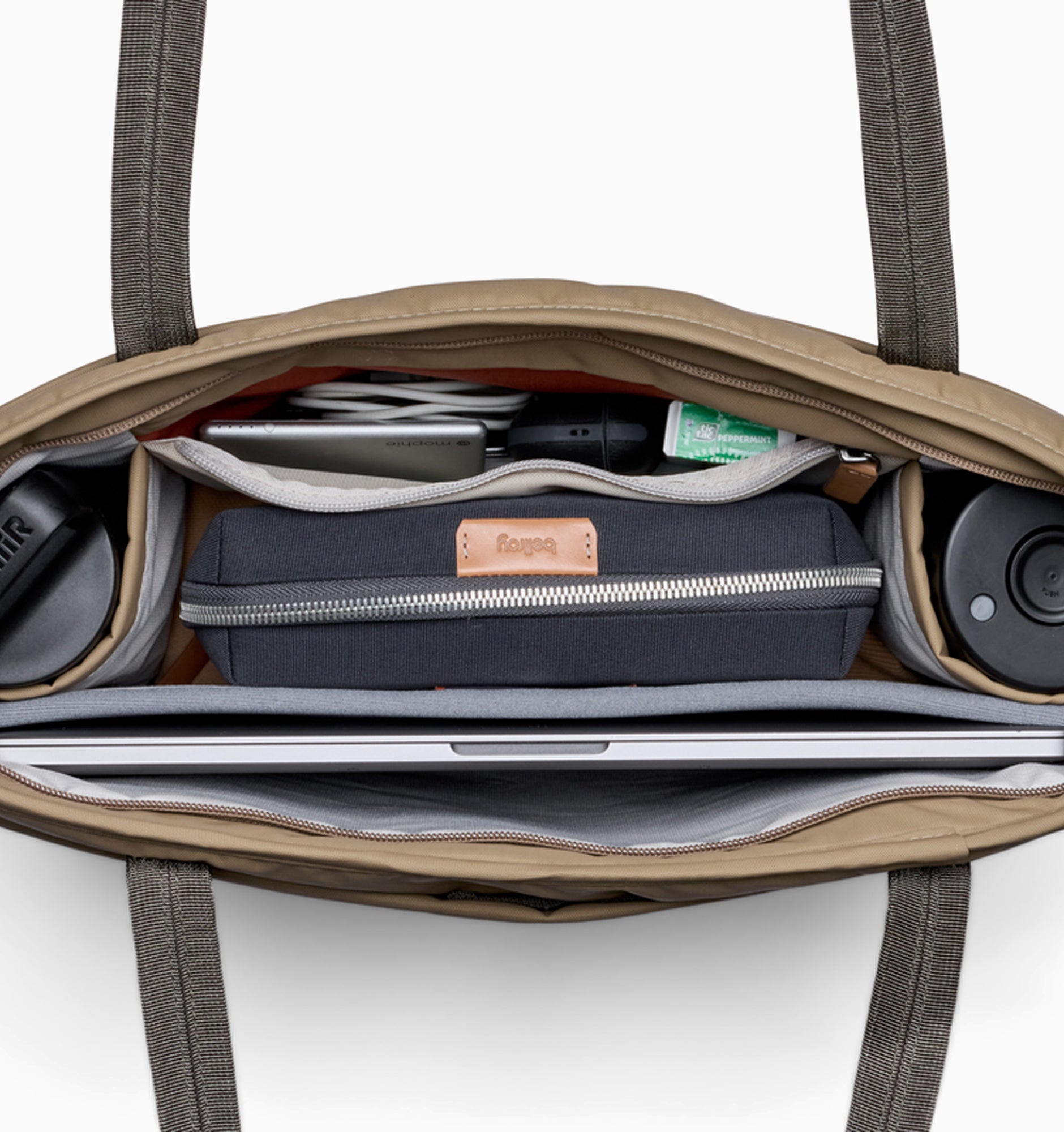 - Disappearing zipper - Tote zippers can often obstruct your access, so we designed one that all but disappears when it’s open. To give you full, wide-mouth access to what’s inside.