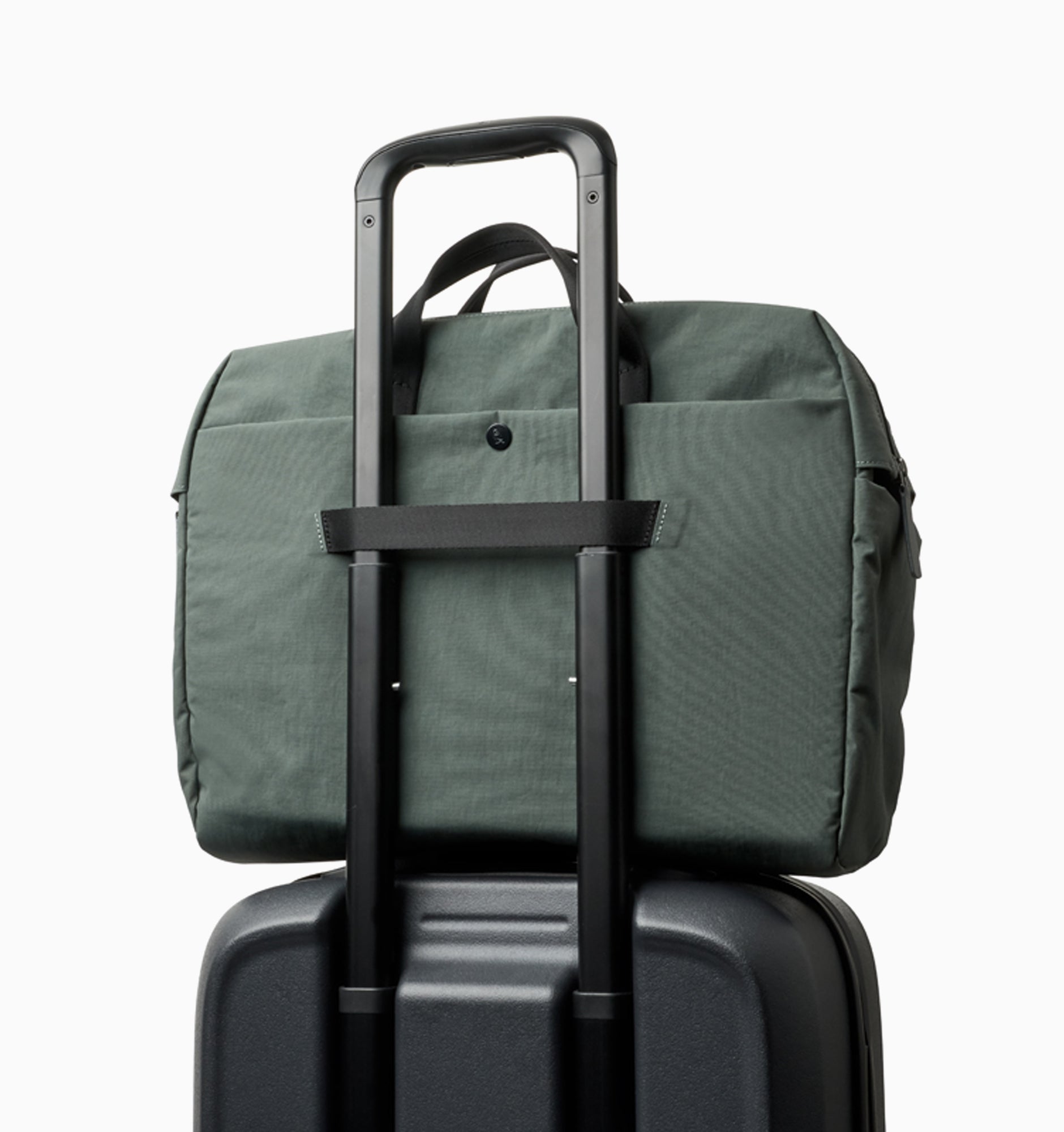 - Luggage pass-through slides over a suitcase handle