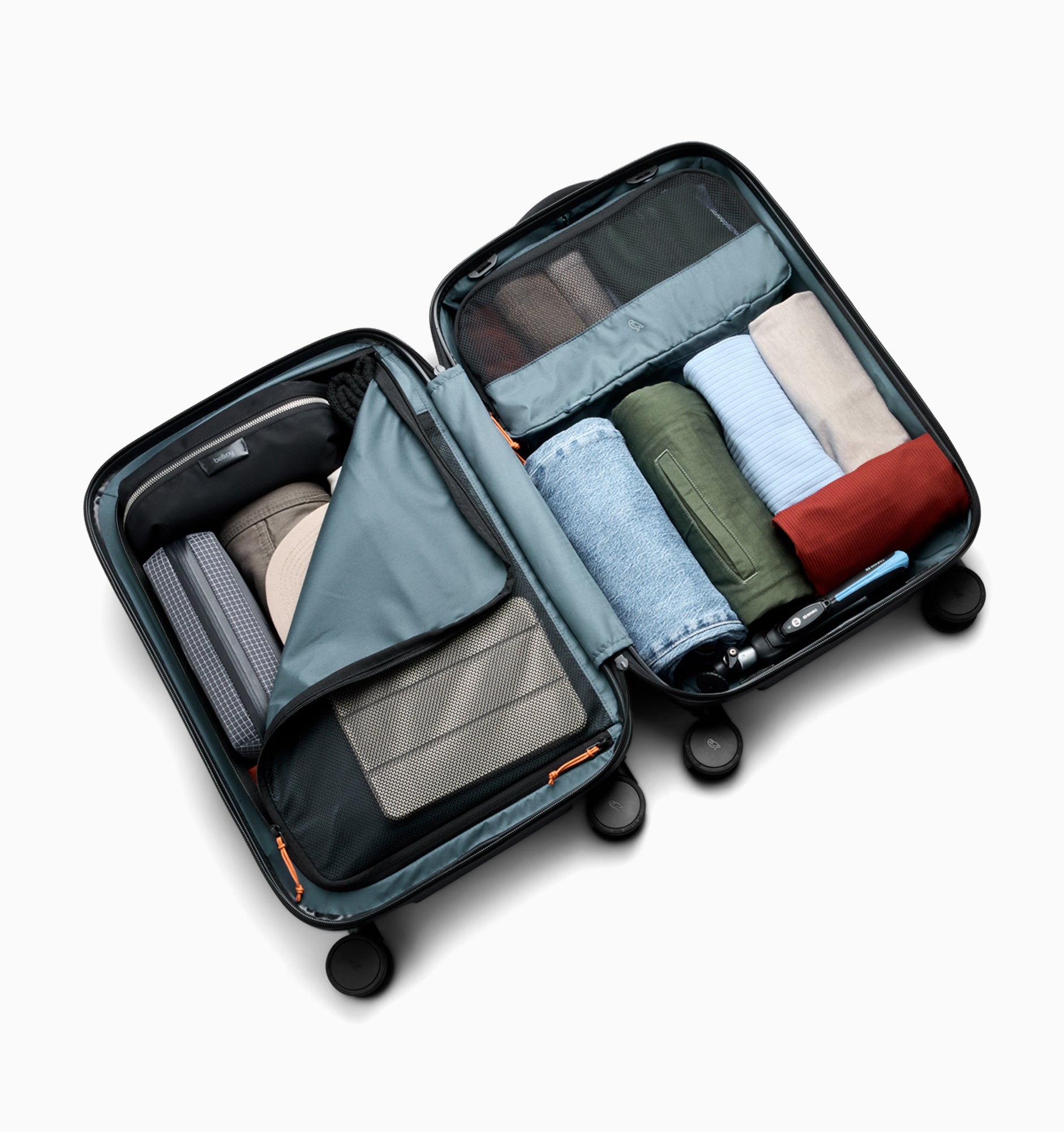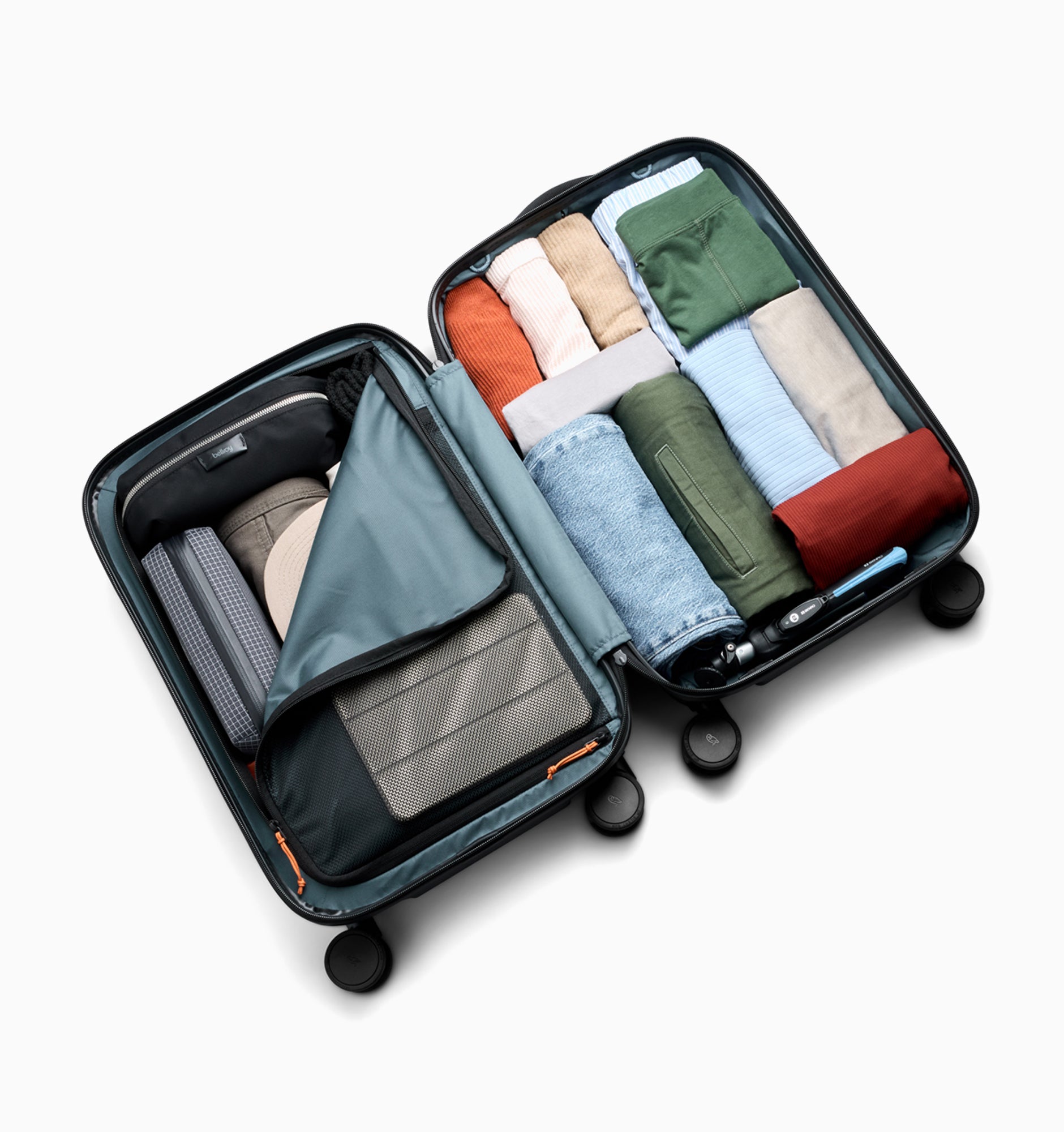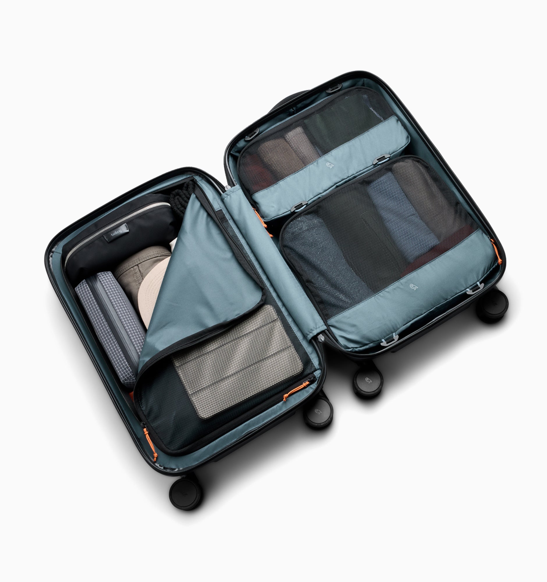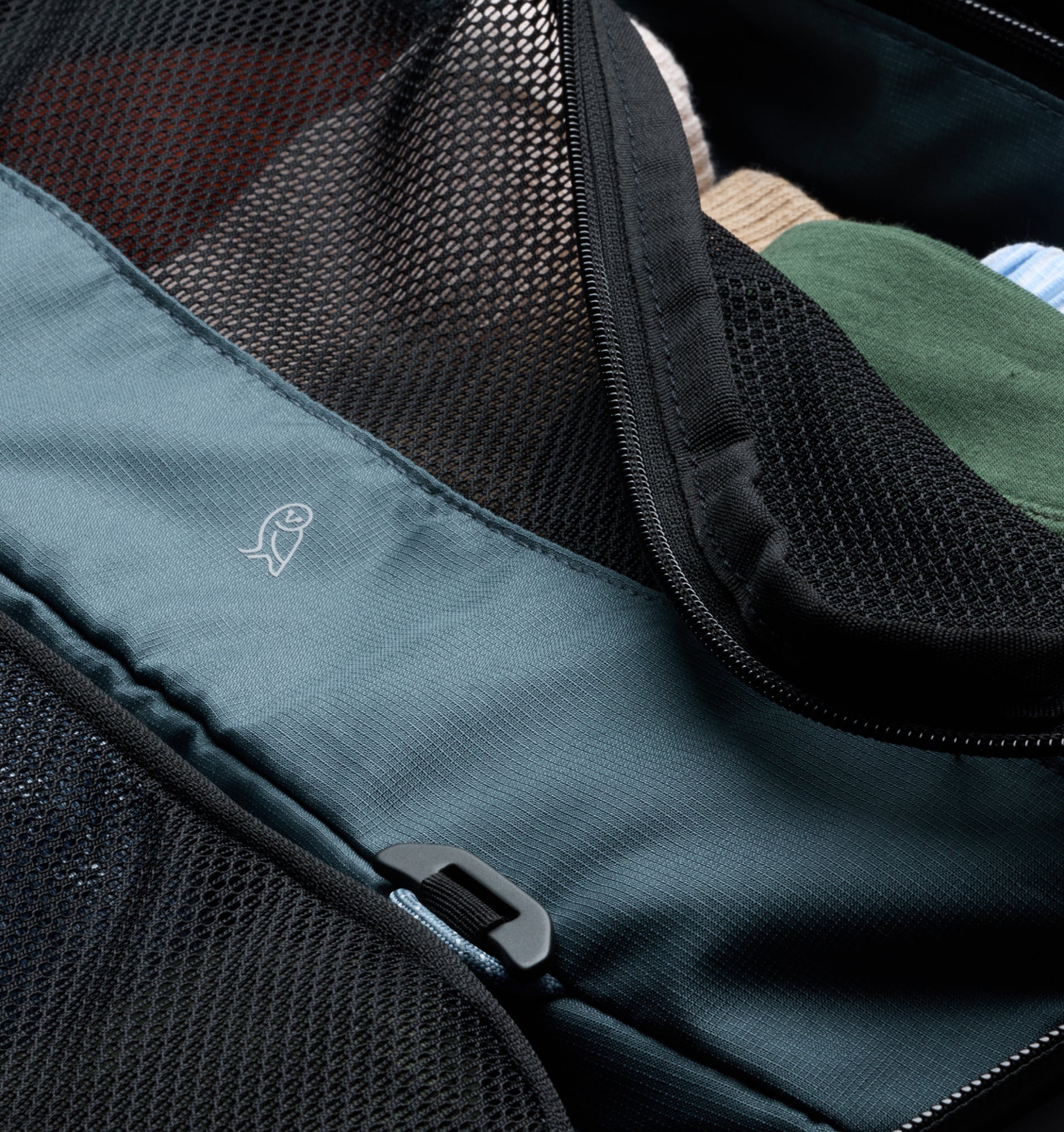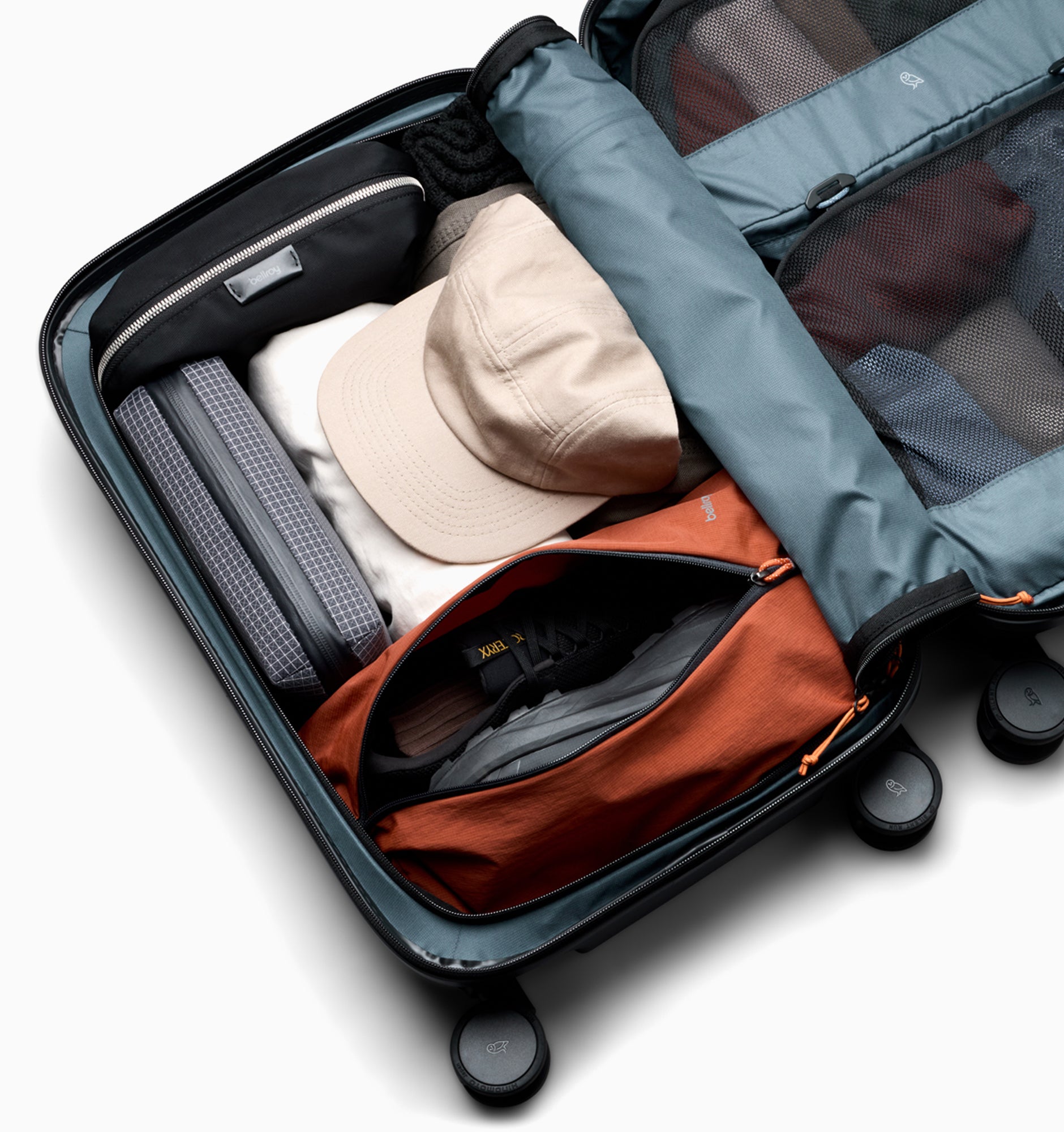 - Large mesh drop-in zone compatible with Bellroy packing cubes