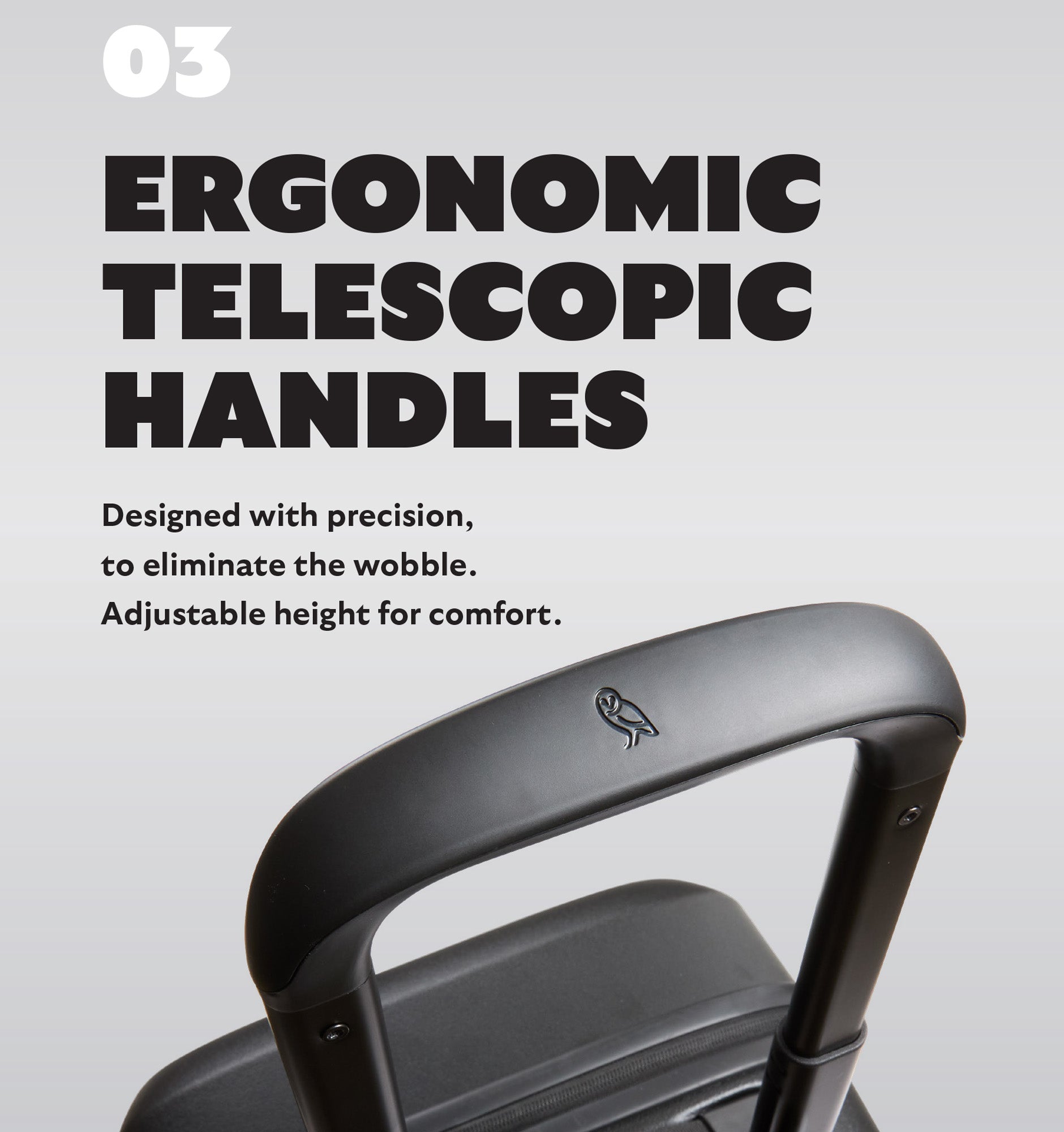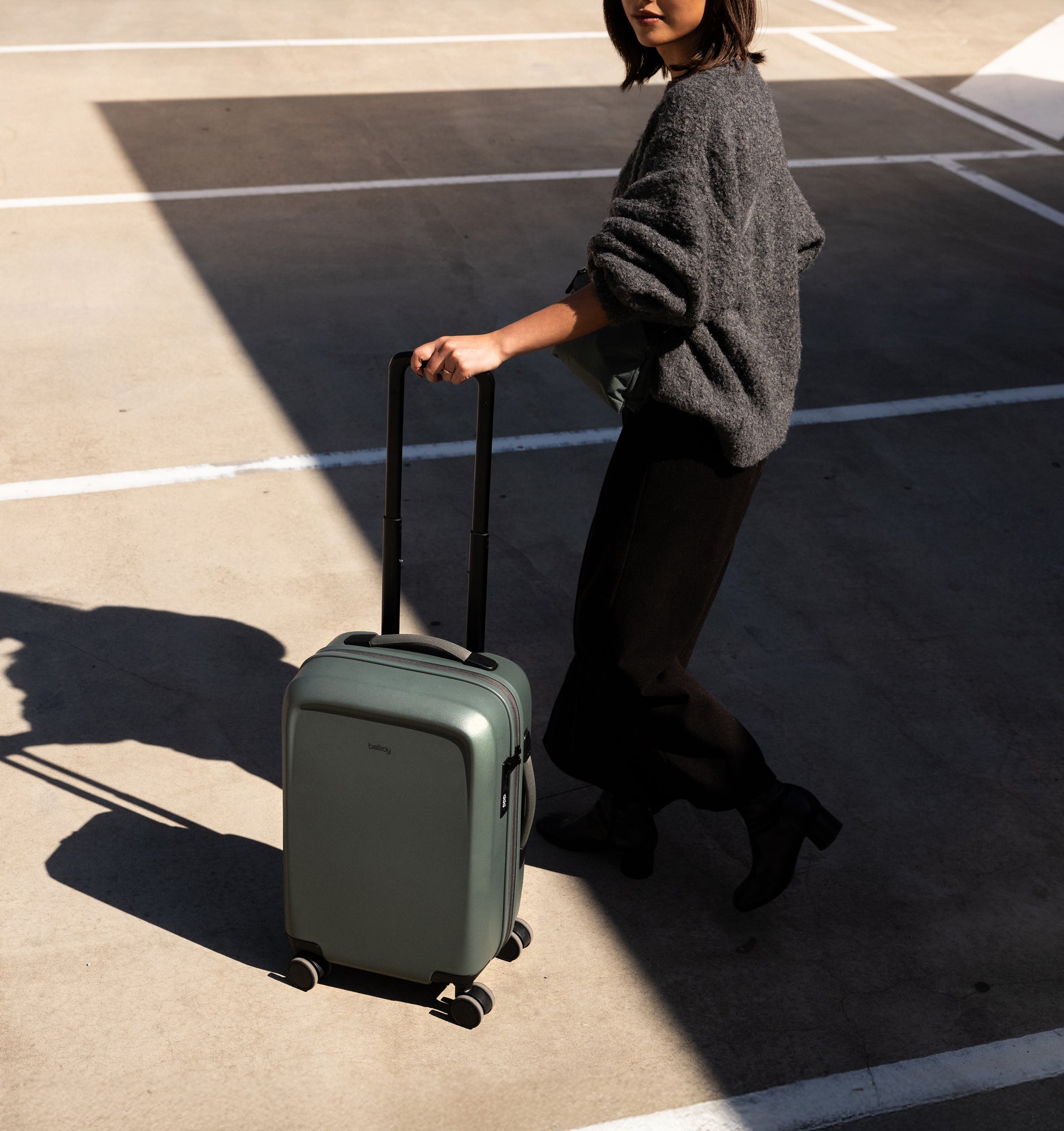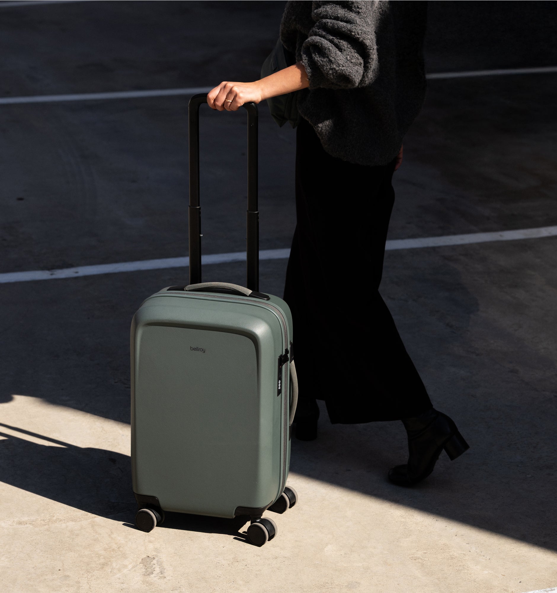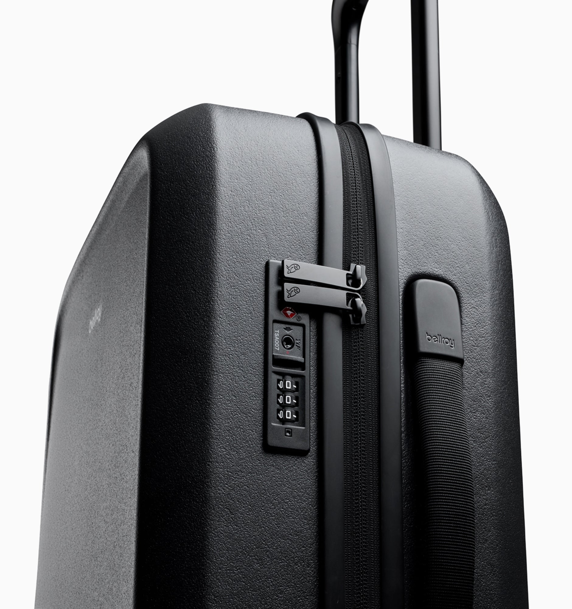 Rather than using an off-the-shelf solution, Bellroy developed a custom handle with a smooth profile, ergonomic underside button, and three lockable height settings for a comfortable grip and tailored fit.