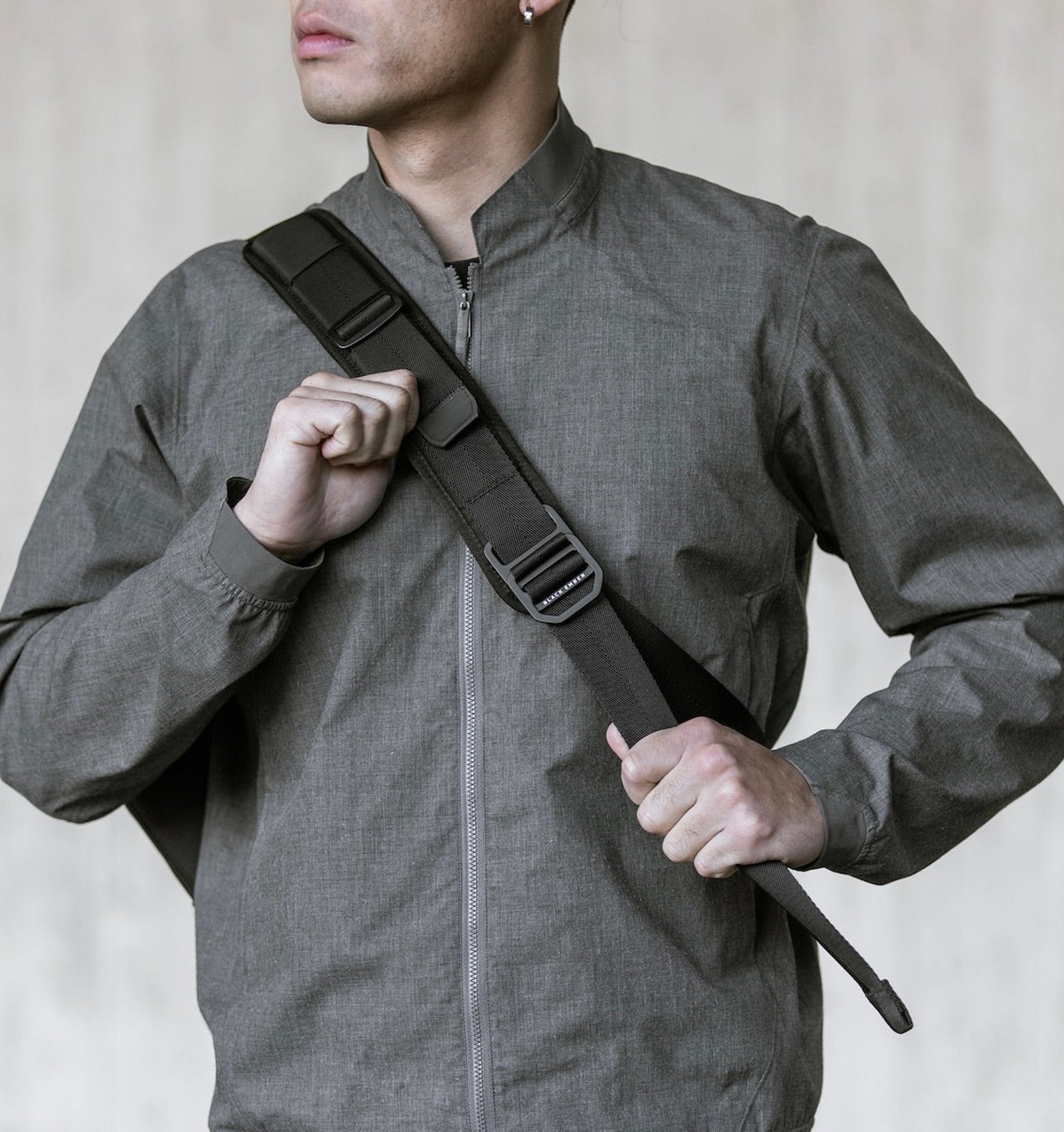 Black Ember's new Lever™ hardware features a quick slide release for adjustability and two anodised aluminium pivot points for mobility. Wear the Grip as you like it: high on your back or low on your hip, left shoulder or right.