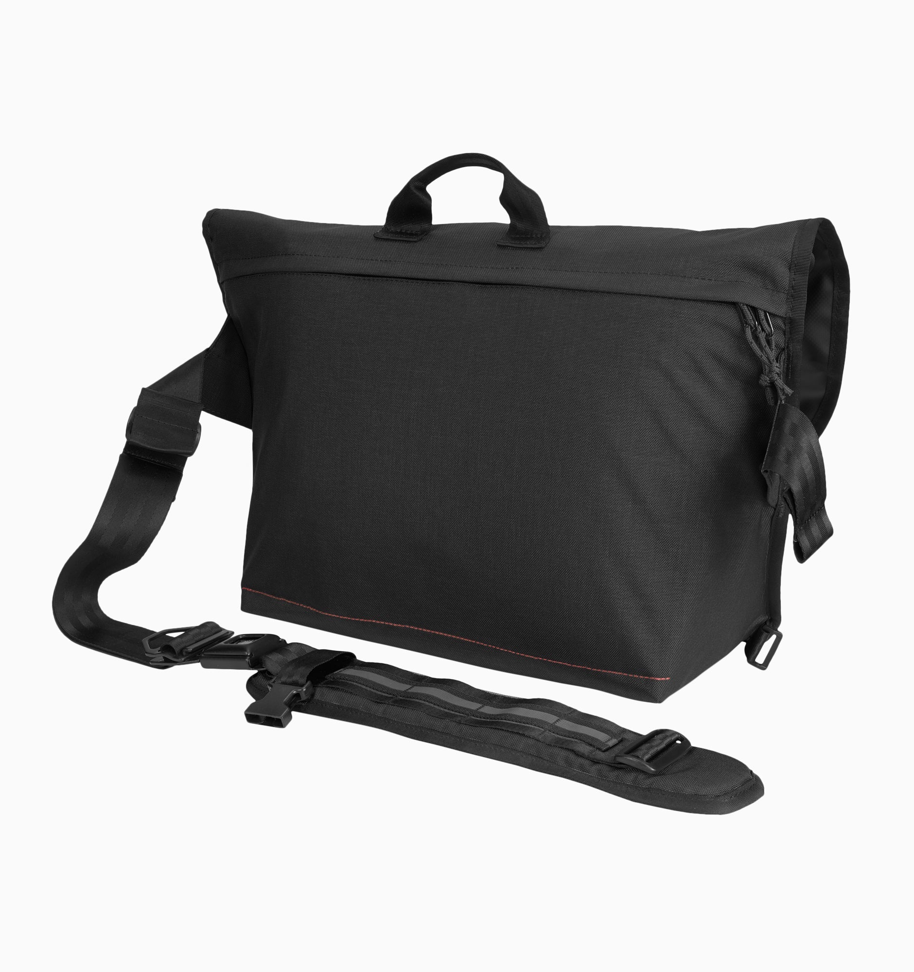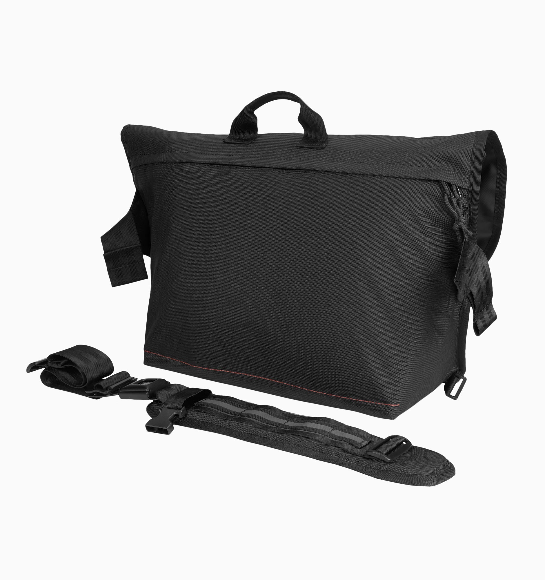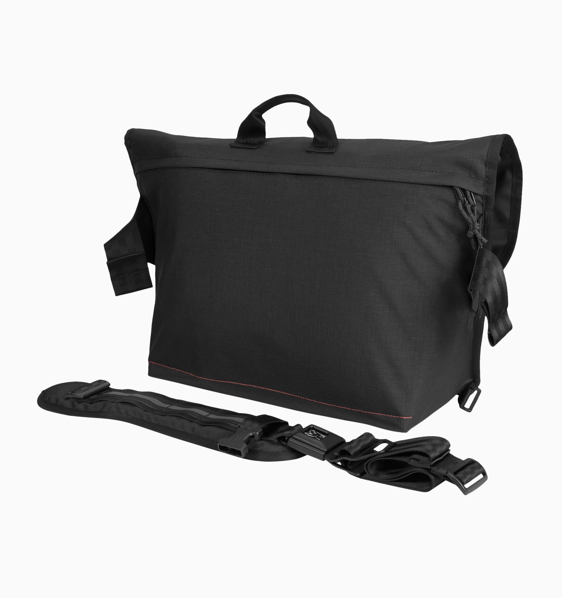 - Organised tech messenger with iconic seatbelt buckle