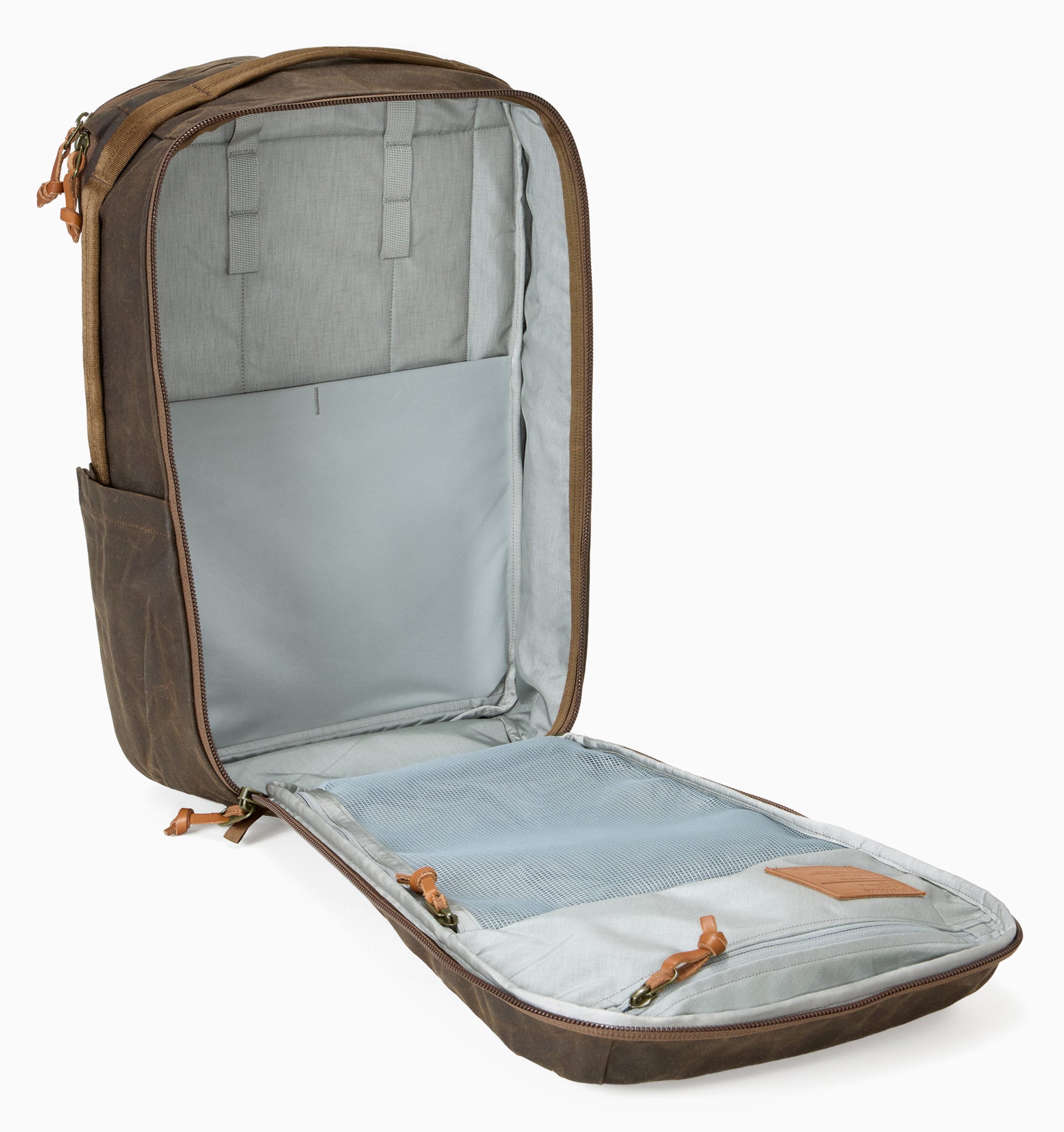 Developed in collaboration with the historic Scottish mill Halley Stevensons, the waxed canvas is stiff, durable, and designed to improve with age. Leather zipper pullers, sourced from the century-old supplier Berger Co., add a refined touch. Paired with the standard gray internal lining and the signature features of the CTB26, this heritage variation is crafted to establish its own legacy.