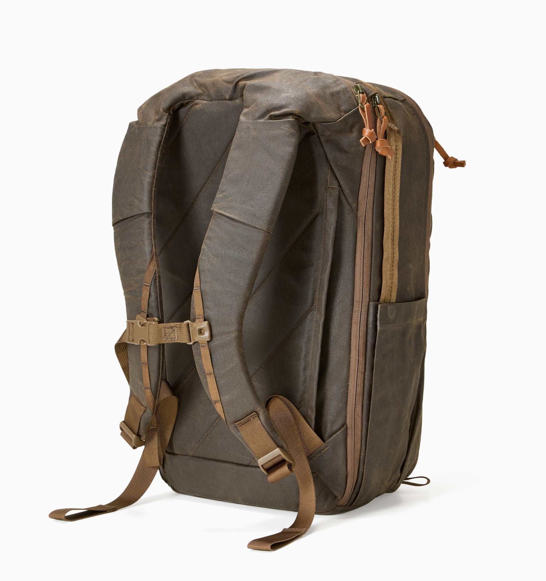 The Evergoods Civic Travel Bag 26L series is renowned for its utility-focused design, featuring a luggage pass-through, water bottle pockets, and over 13 organisational zones. This modern foundation has been enhanced with a custom-made, high-end cotton and wax-finished shell known as P400 Wax C4X.