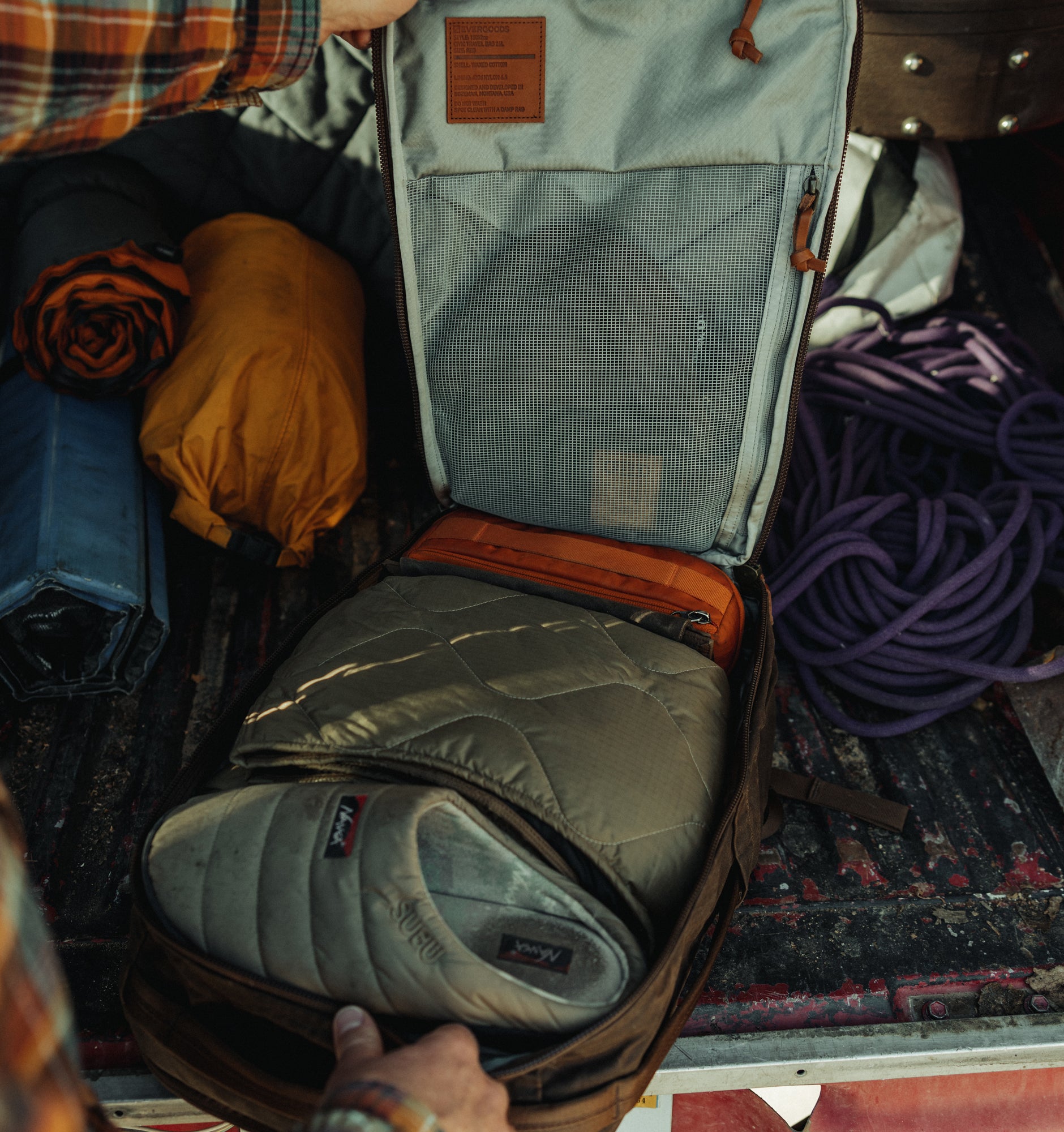 Features of the Evergoods Civic Travel Bag 26L - Waxed Canvas