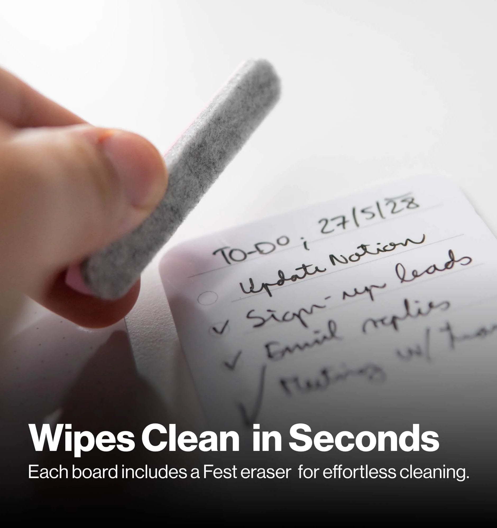 Write down what matters today. Erase it tomorrow. That’s it. The surface wipes clean in seconds, so you can start fresh whenever you want. It’s as flexible as your day. Unlike sticky notes, it won’t end up in the trash after a single use…