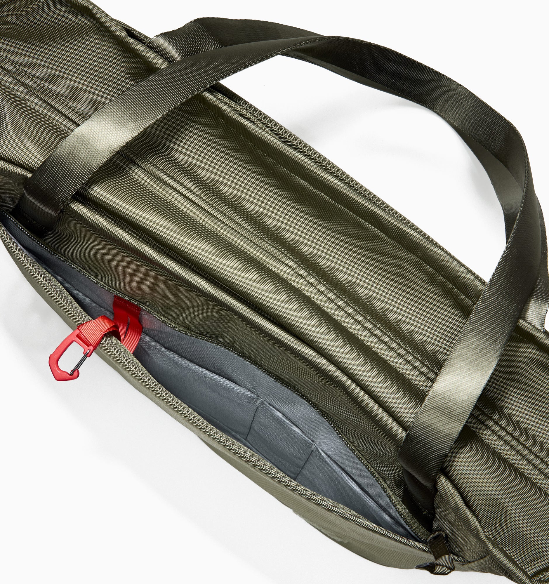 - Shoulder or Hand Carry - The dual handles are made from custom-woven tubular nylon webbing with a foam core for comfort, whether carried by hand or on the shoulder. Each handle features three low-profile magnets in the apex, allowing them to neatly align and stay together — always ready to grab and go.