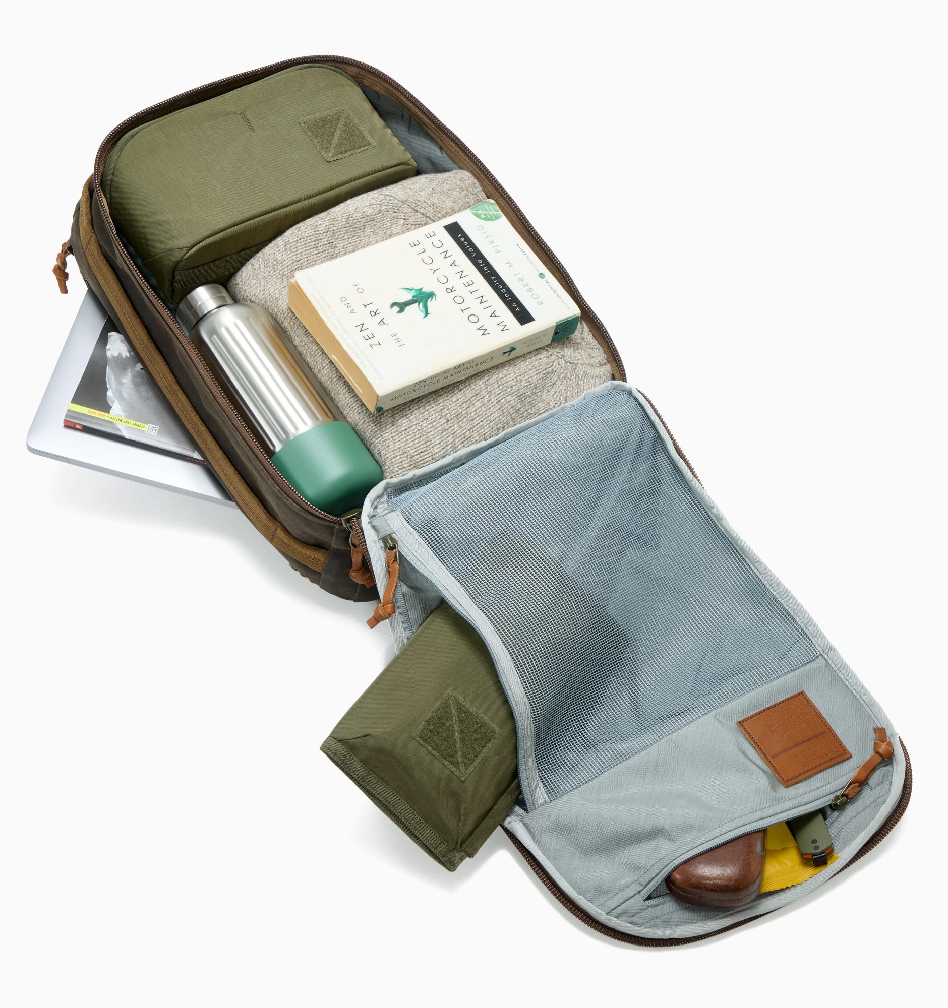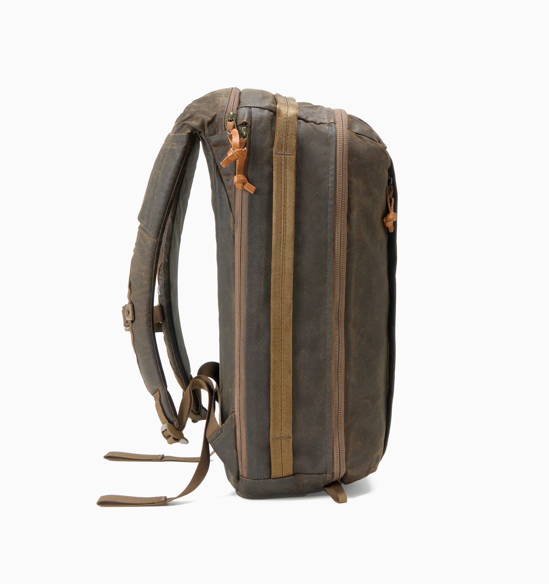 The waxed canvas was developed in collaboration with the historic Scottish mill Halley Stevensons. It is stiff, durable, and designed to improve with age. Leather zipper pullers sourced from the 100-year-old supplier Berger Co. add a heritage touch. Combined with the standard gray internal lining and the CPL24's signature features and appearance, this heritage variation is crafted to build its own legacy.