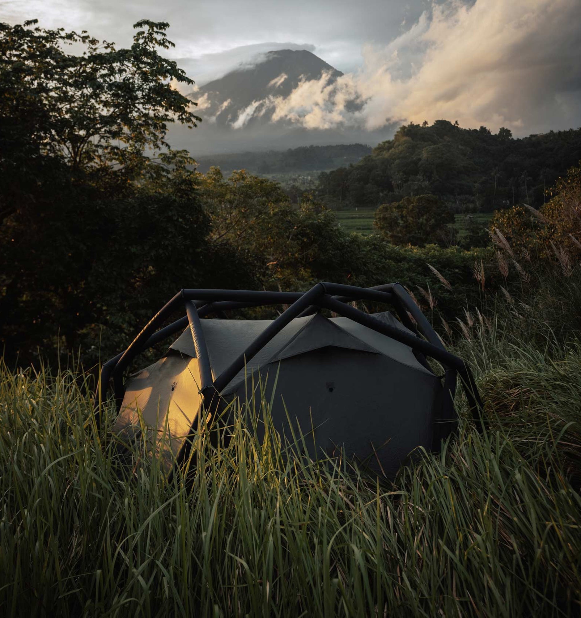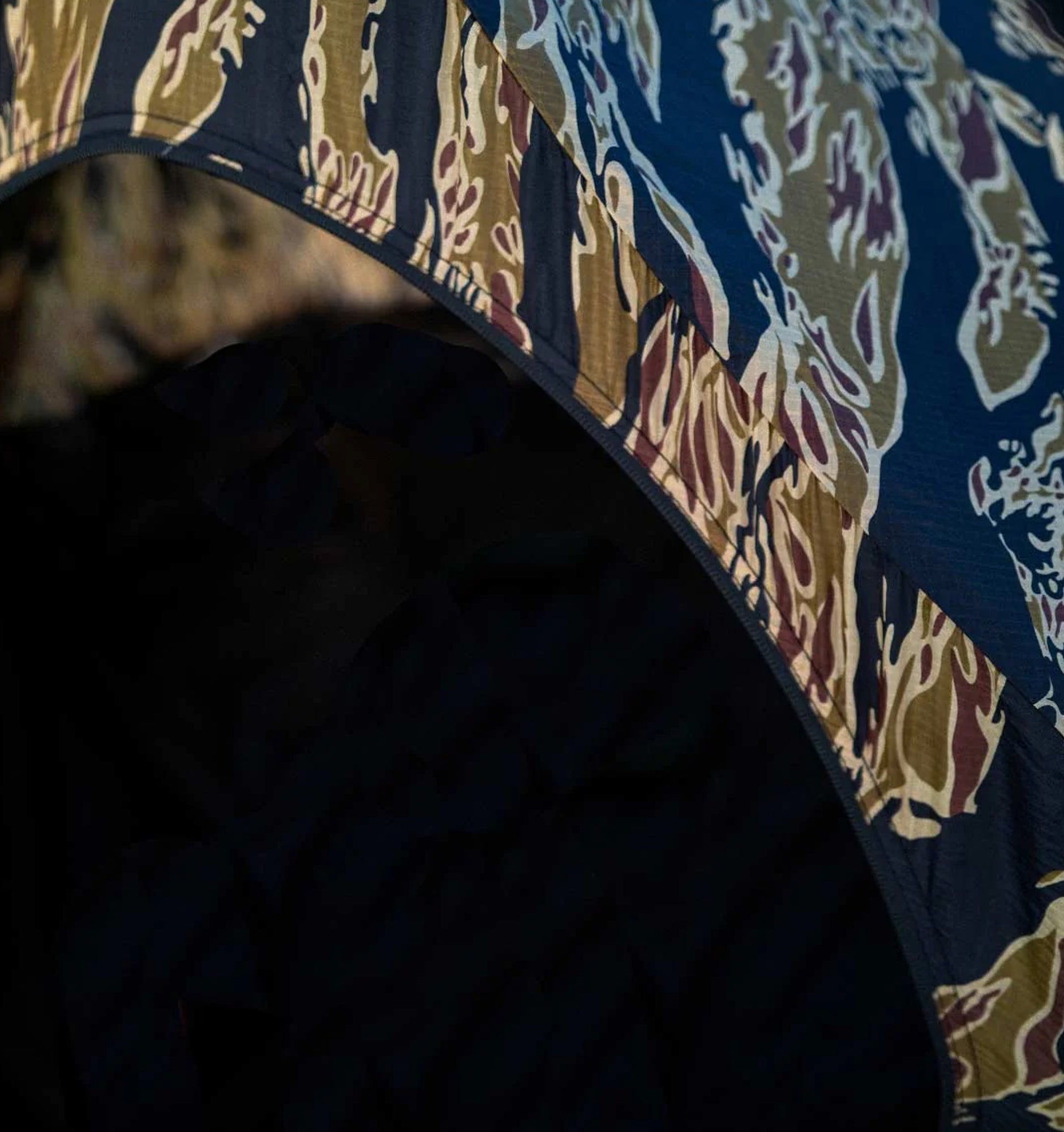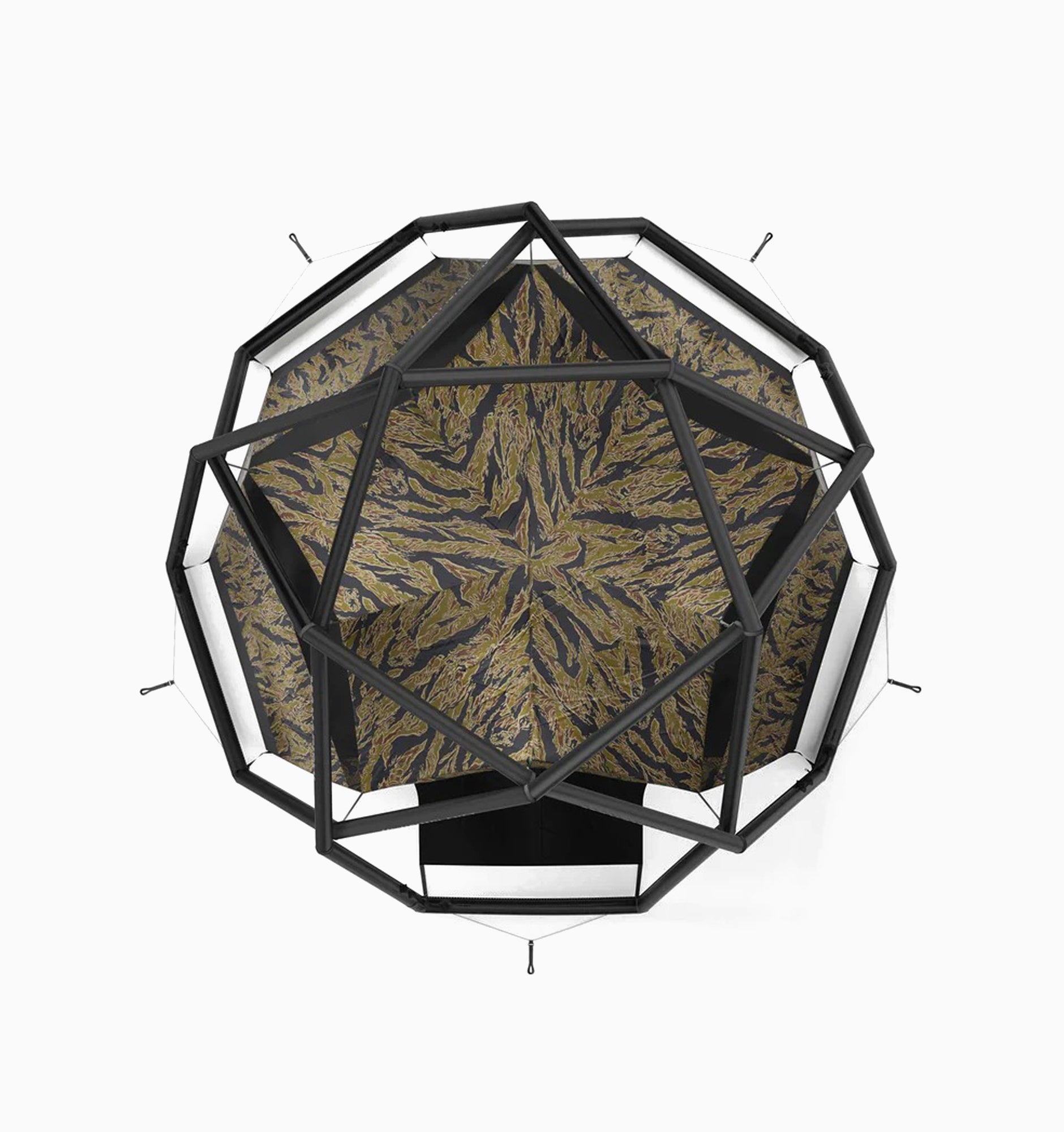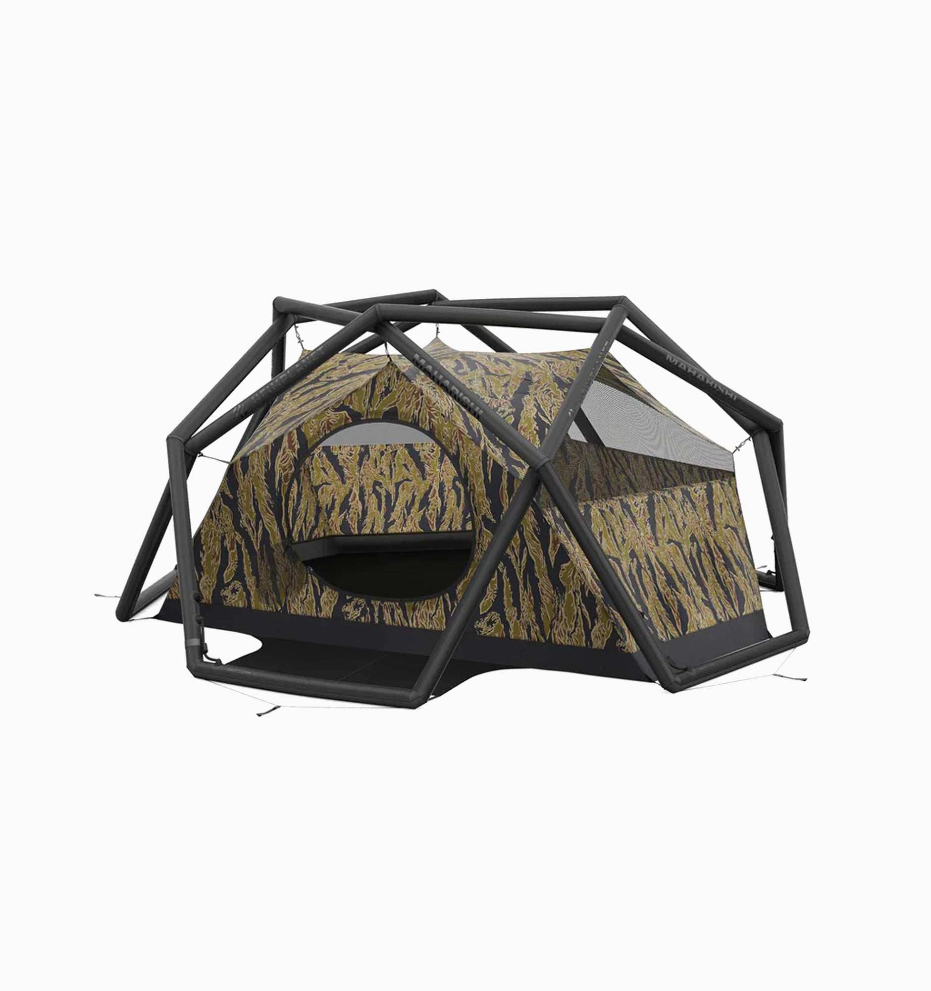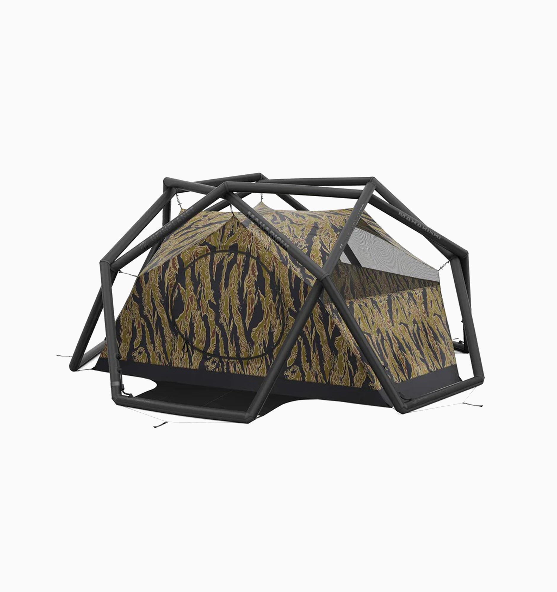 The limited edition inflatable tent that combines the aesthetics of Maharishi with the tent design of HEIMPLANET is perfect for 2-3 people. For the collaboration, Maharishi has chosen a special DPM: Golden Tigerstripe Camouflage - a reproduction of a rare Vietnamese Tigerstripe pattern is. The pattern is used inside the tent not to make the tent invisible, but to celebrate the roots of camouflage in nature and its use by artists.
