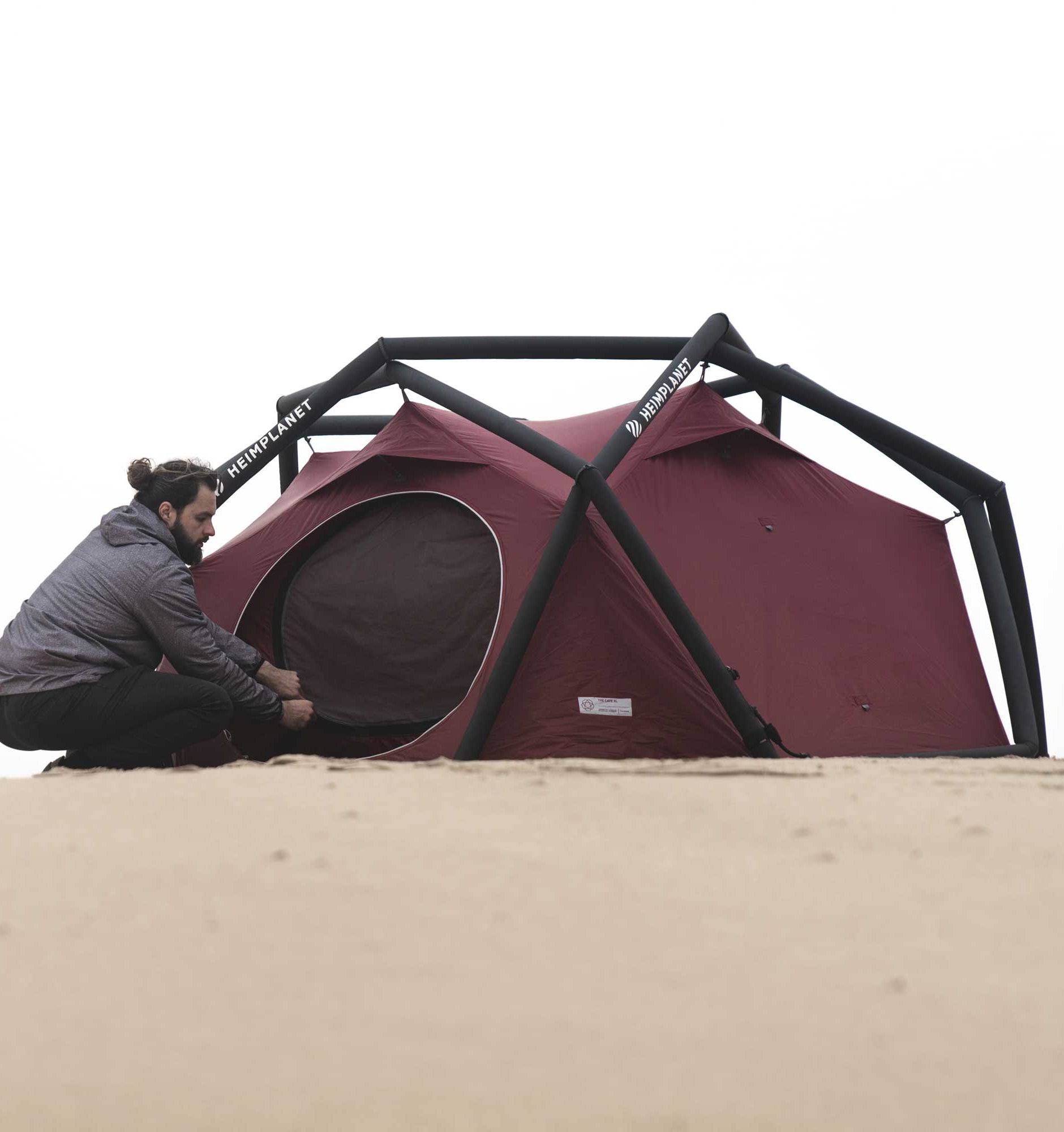 secure all four corners while keeping the flysheet and inner tent safely separated. This ensures that The Cave XL stays perfectly steady and dry – even when it’s stormy and pouring outside! - Flexibility: The tent is designed so that the frame, the flysheet and the inner tent can be pitched in a single step (inflation). The flysheet and inner tent can also be used separately.
