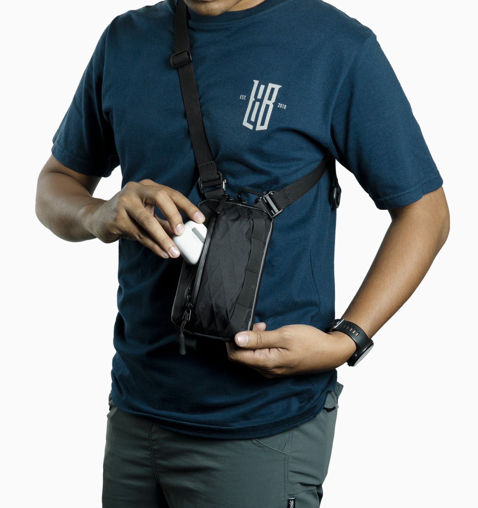 Life Behind Bars The Division - Quarter Pouch X-Pac is a compact organisational pouch designed for everyday essentials. Larger than the brand's phone pouches like The Tiny Houdini, it offers enhanced functionality with three elastic card-sized pockets, each capable of holding multiple cards, and a convenient catch-all pocket accessible from both the inside and outside, perfect for small items such as earbuds and multitools. It also features a full-length compartment that fits phones up to 6.5 inches. Versatile and adaptable, the Quarter Pouch is ideal for carrying a phone-and-wallet combo or any everyday carry (EDC) items. It can be carried on its own, attached to the shoulder strap of most of the brand's backpacks, or used with an optional sling strap—ideal for carrying pocket cameras. This pouch integrates seamlessly with the Transition Tote and is modular, allowing it to stack with up to four Quarter Pouches or pair with other Division lineup pouches like the Half Pouch or Dex Mini Pouch for expanded organisational possibilities.