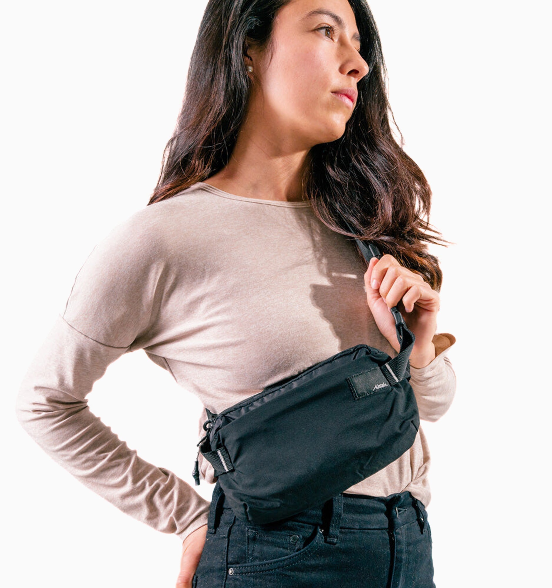 - Adjustable strap can be worn as a sling or at the waist