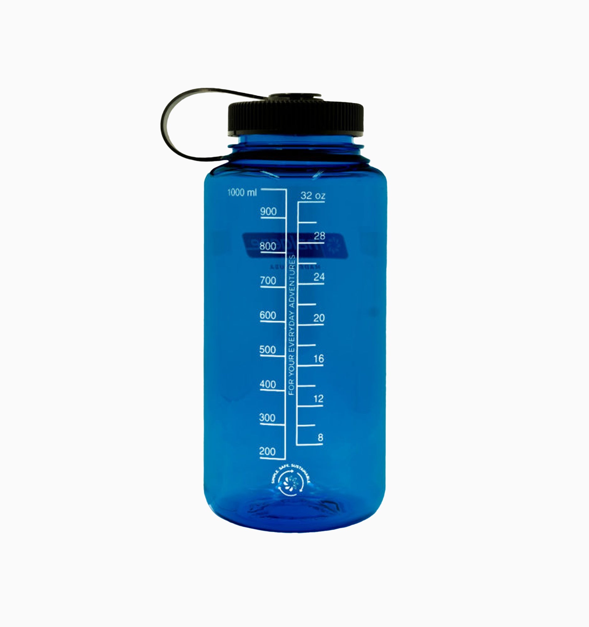 The Nalgene Wide Mouth Bottle has a large opening that easily accommodates ice cubes, fits most water purifiers and filters, and makes hand-washing a breeze. The attached loop-top never gets lost and screws on and off easily. Printed graduations let you keep track of your fluid intake or help mix up a drink or dehydrated meal.