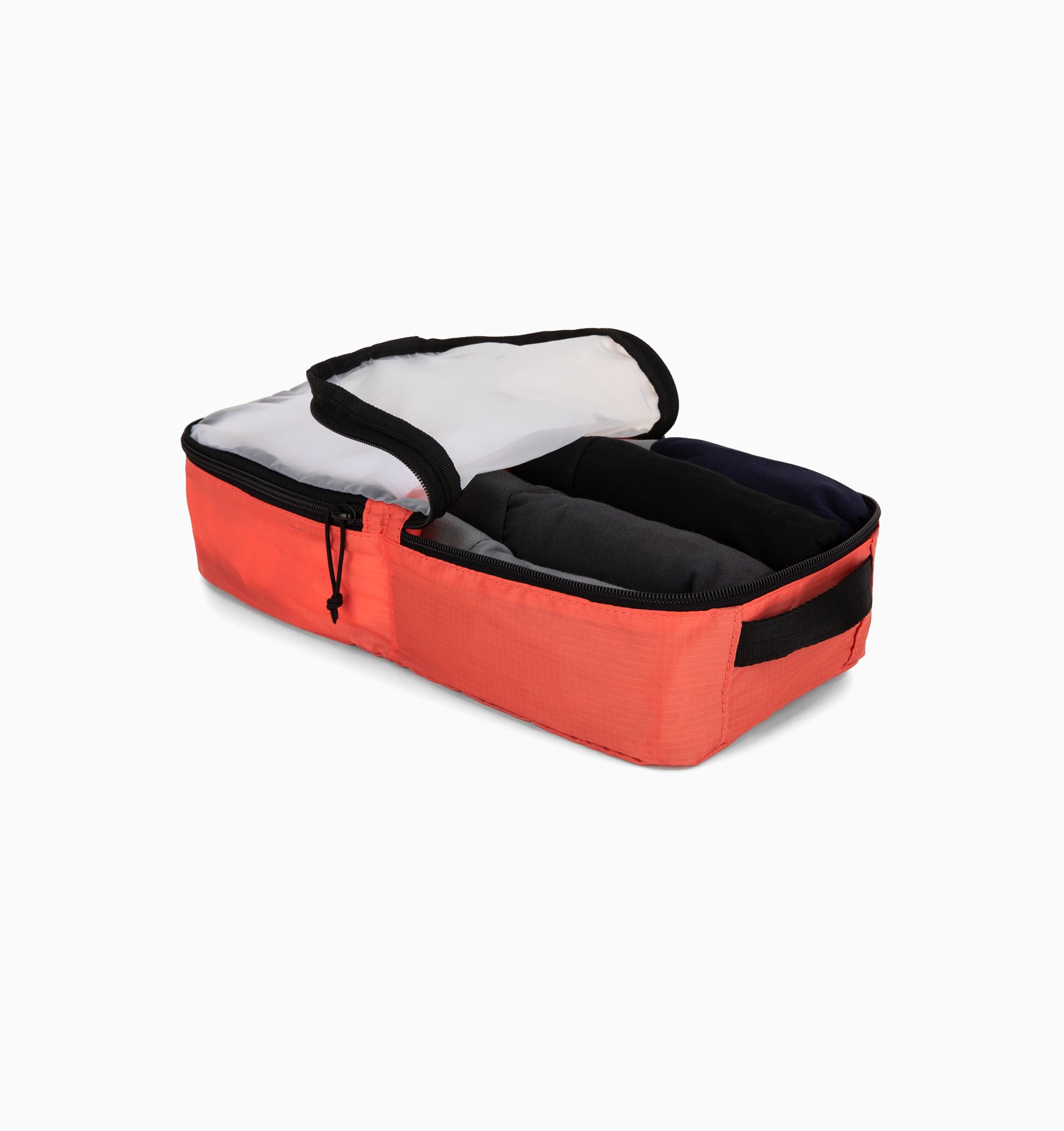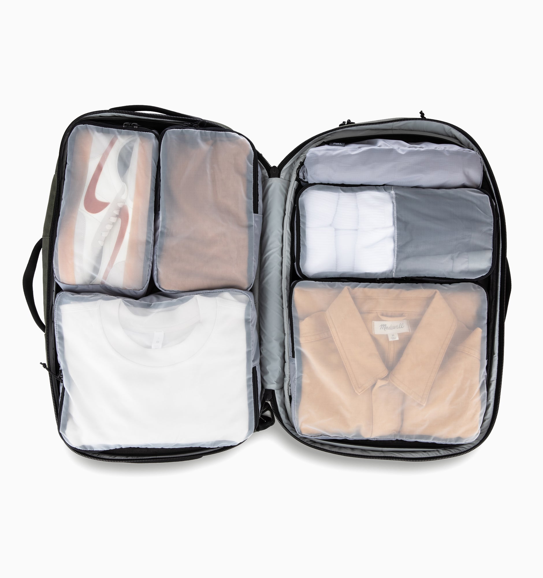 Organise your Pakt bag while taking advantage of every available interior inch. From jeans, sweaters and other bulky items, to socks and small accessories – there's a place for everything. Large cubes are the perfect size to pack sweaters, jeans, button ups, or other bulky items. Small cubes neatly pack shirts, athletic wear, shoes, and tech. Stash socks and underwear in the dual sided cube; and you’re ready to roll out!