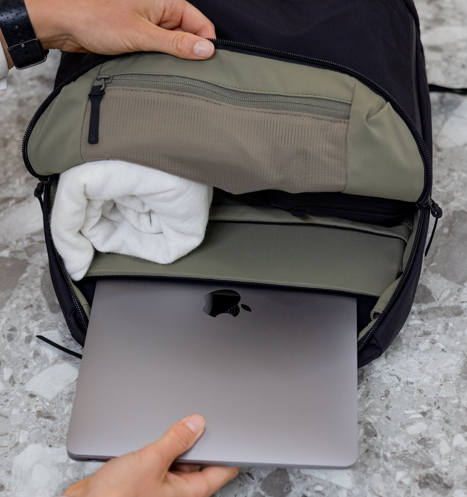 Versatile, minimalist design: Perfect for work, university, and everything in-between, with subtle branding and three colours options: Black, Green, and Sand.