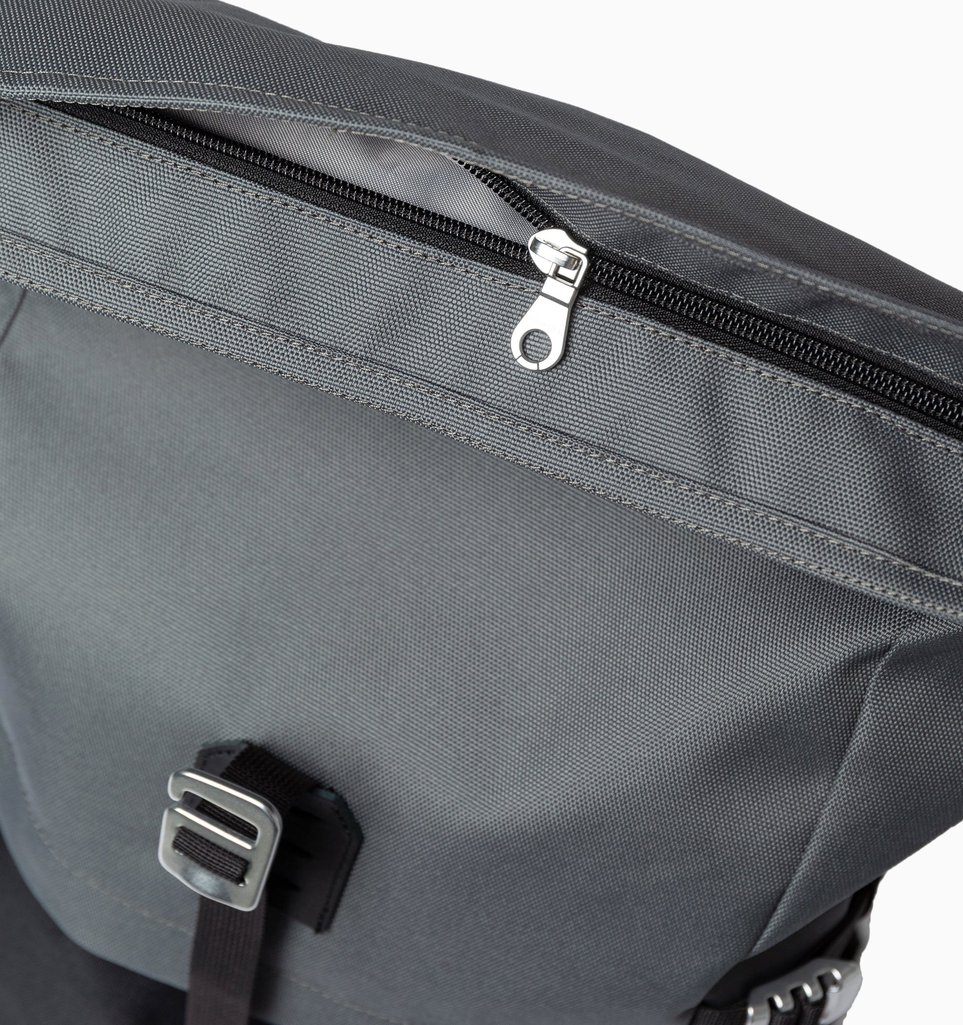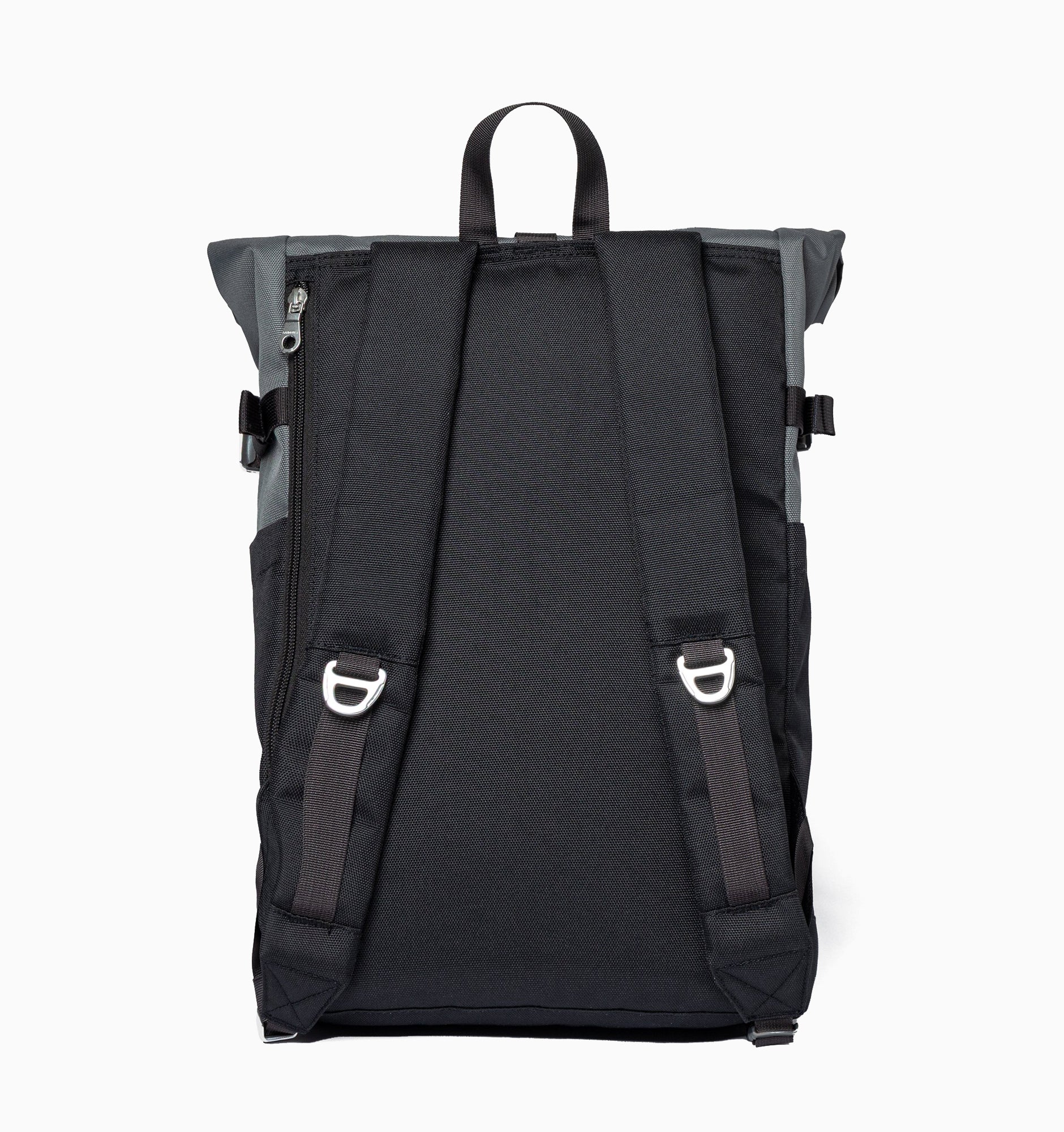 - Rolltop closure and side straps for extra storage.