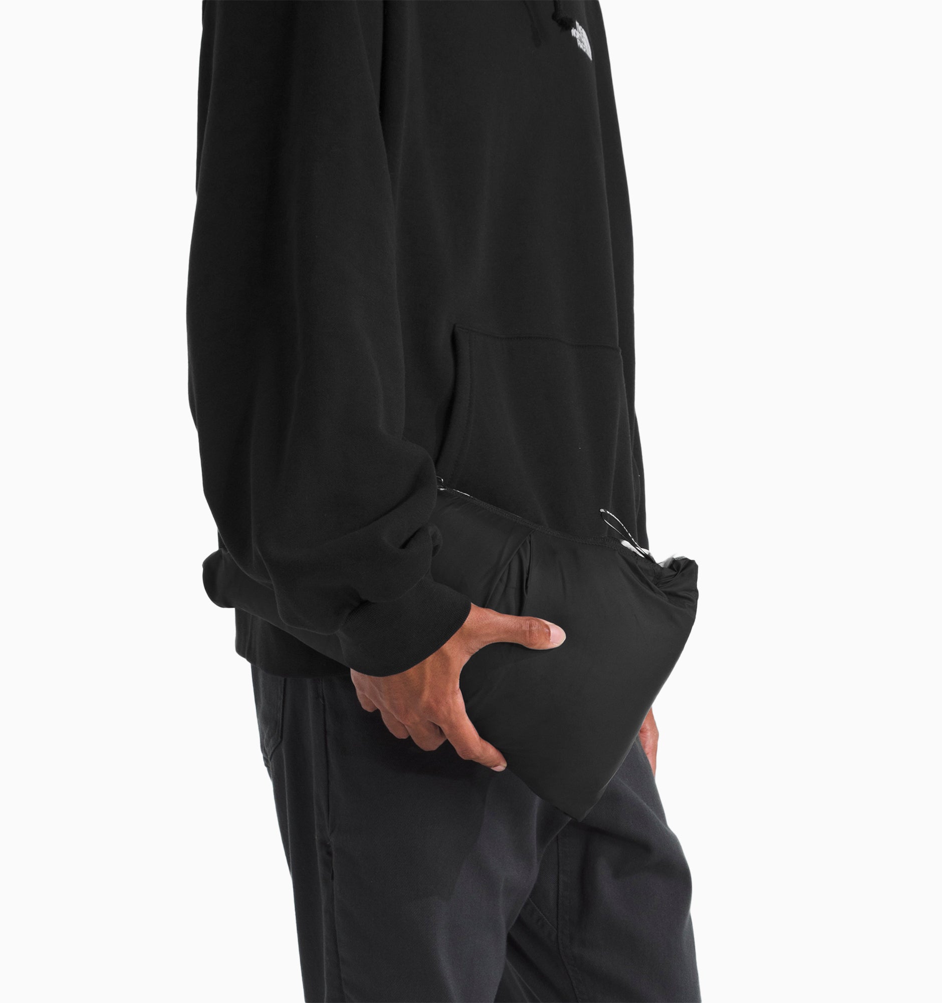 - Attached three-piece hood packs into collar / Secure-zip hand pockets / Jacket stows in right hand pocket