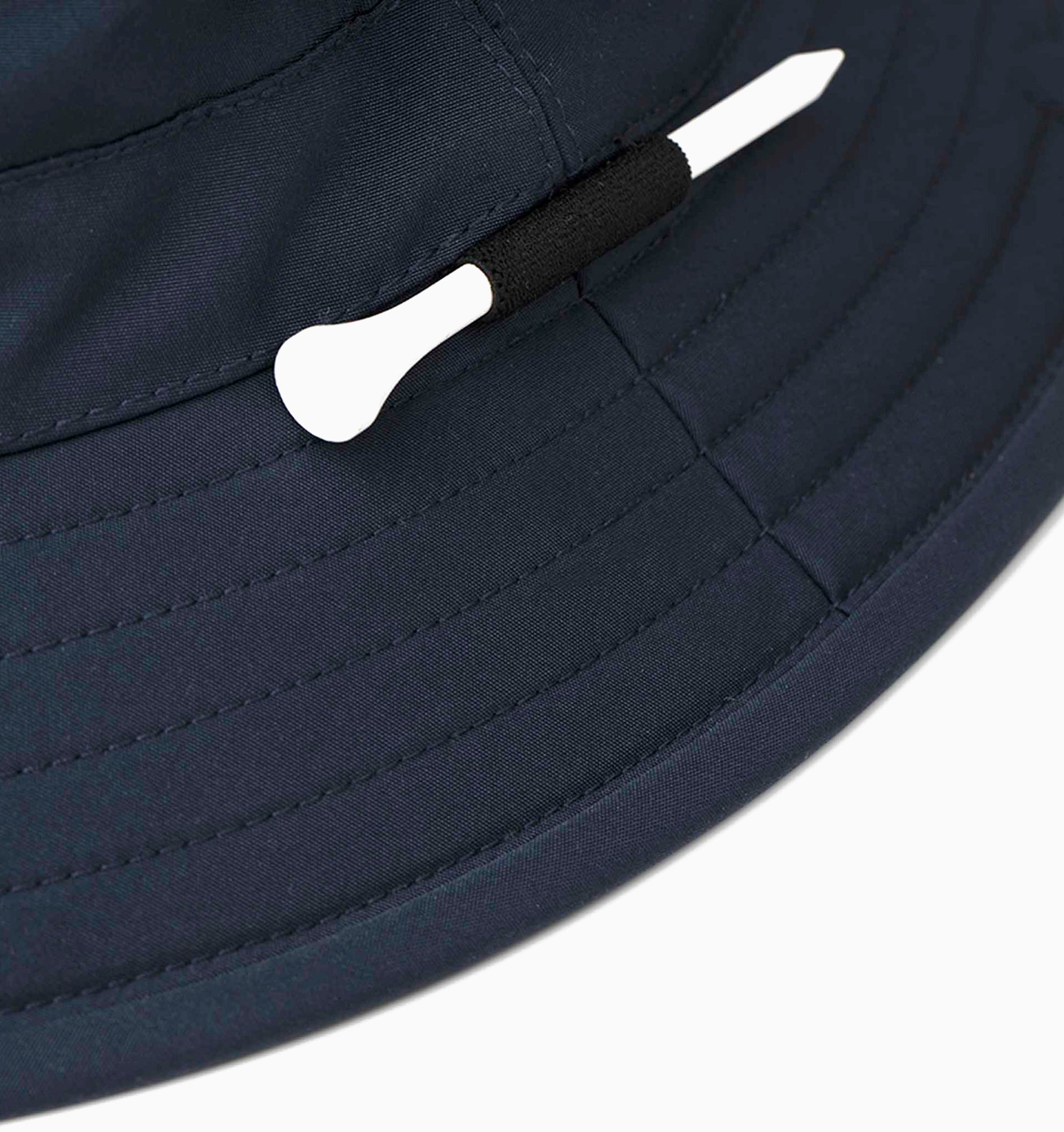 Keep cool and covered on the course with this modern take on the classic bucket hat, designed specifically for golfers. Crafted from a lightweight, rain-resistant, and breathable material, it helps maintain a comfortable climate throughout the game. A built-in tee holder on the brim makes it easy to access a spare—an added touch of convenience and smart design.
